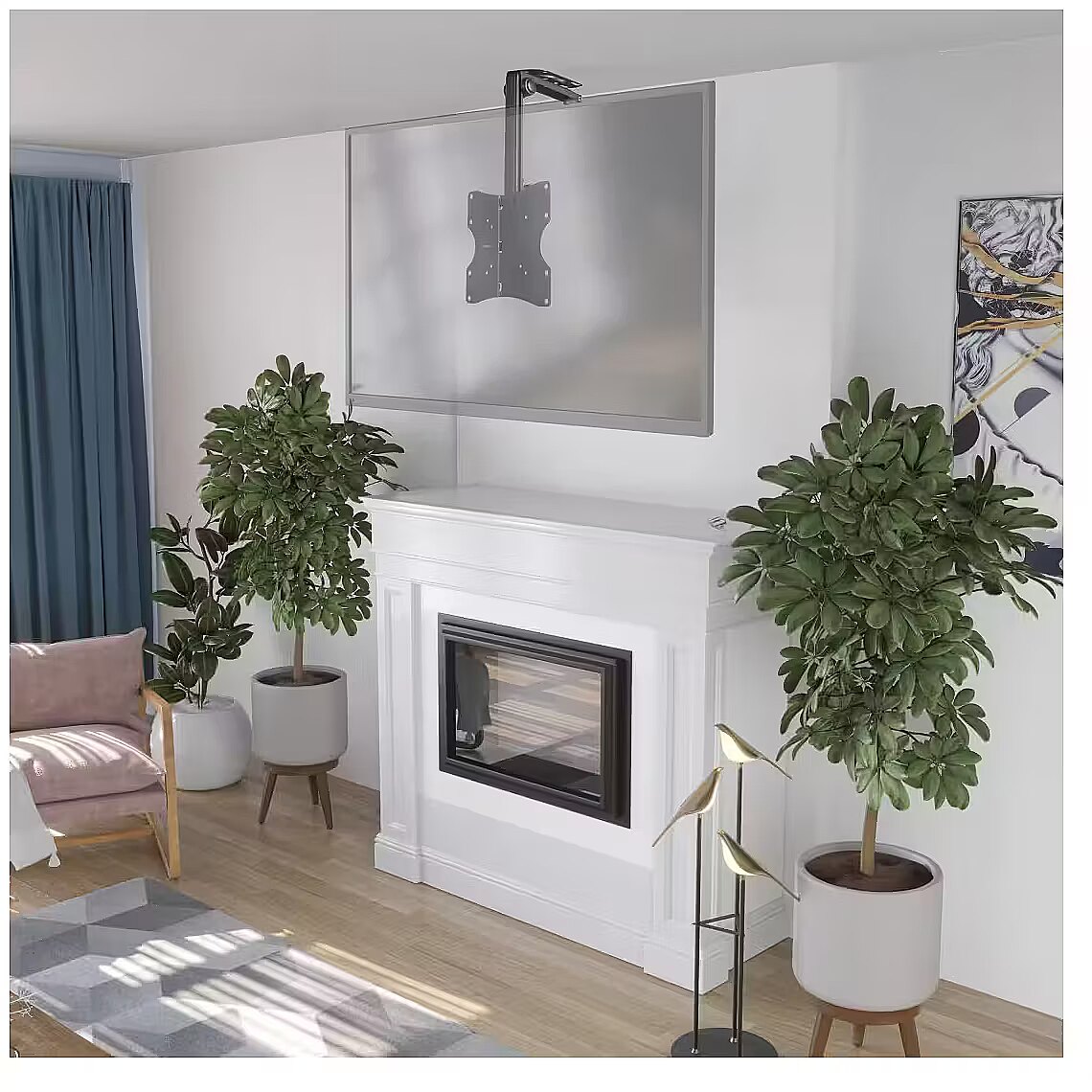 Designed for both sloped and flat ceilings, the universal mount allows free and efficient TV placement.