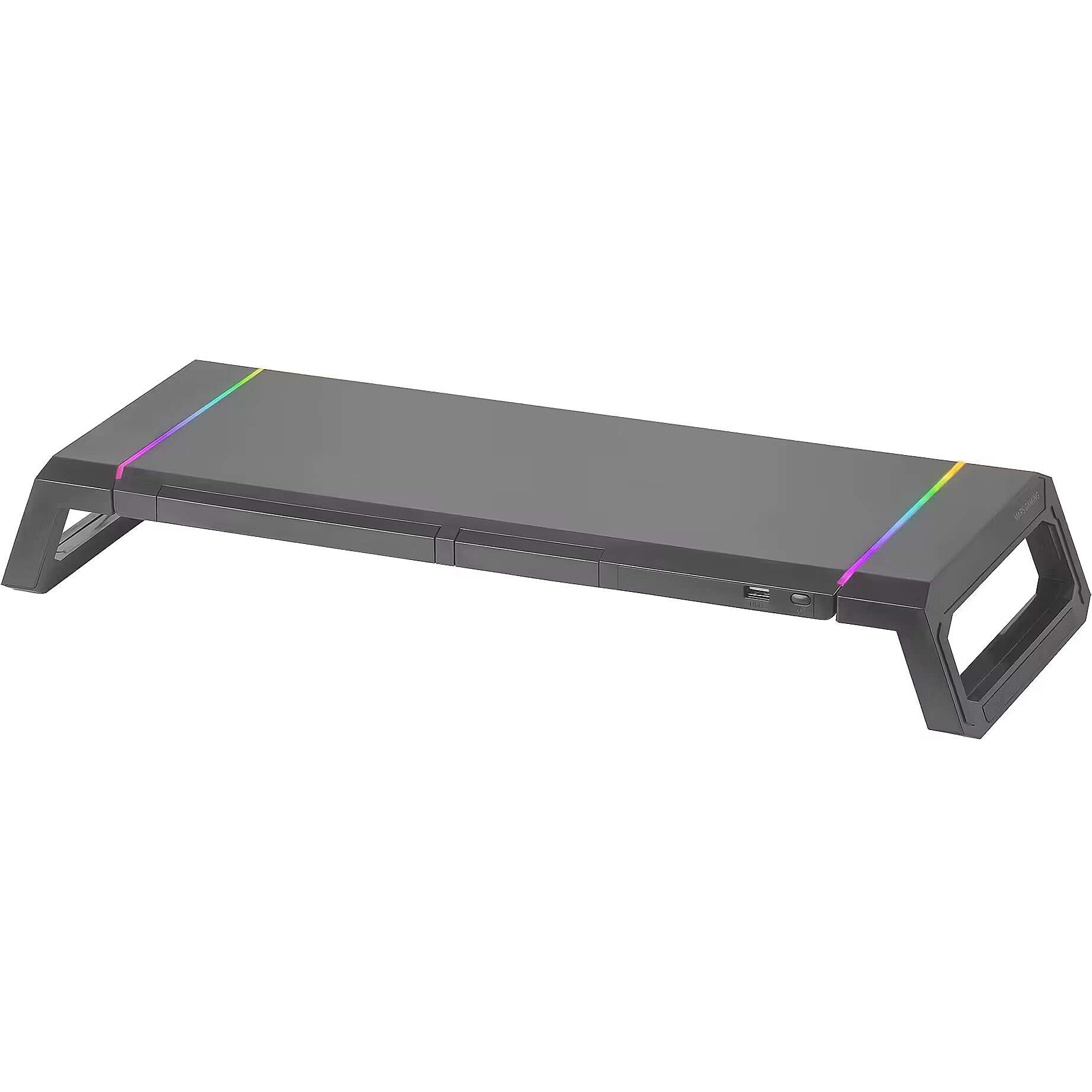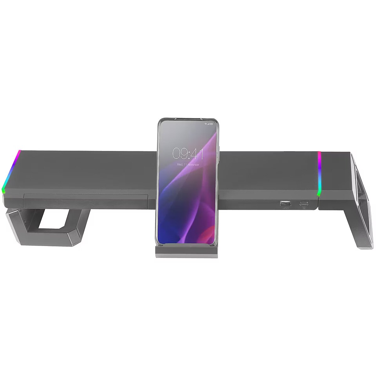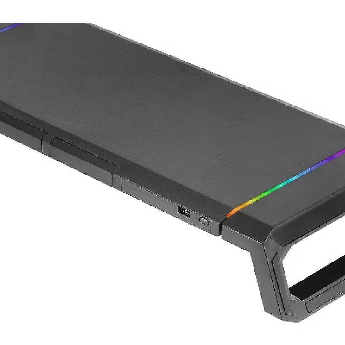 LongProductName - MGS-ONE Black Chroma RGB Monitor Stand Adjustable Size Smartphone and Tablet Stand Front USB 2.0