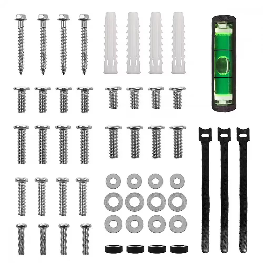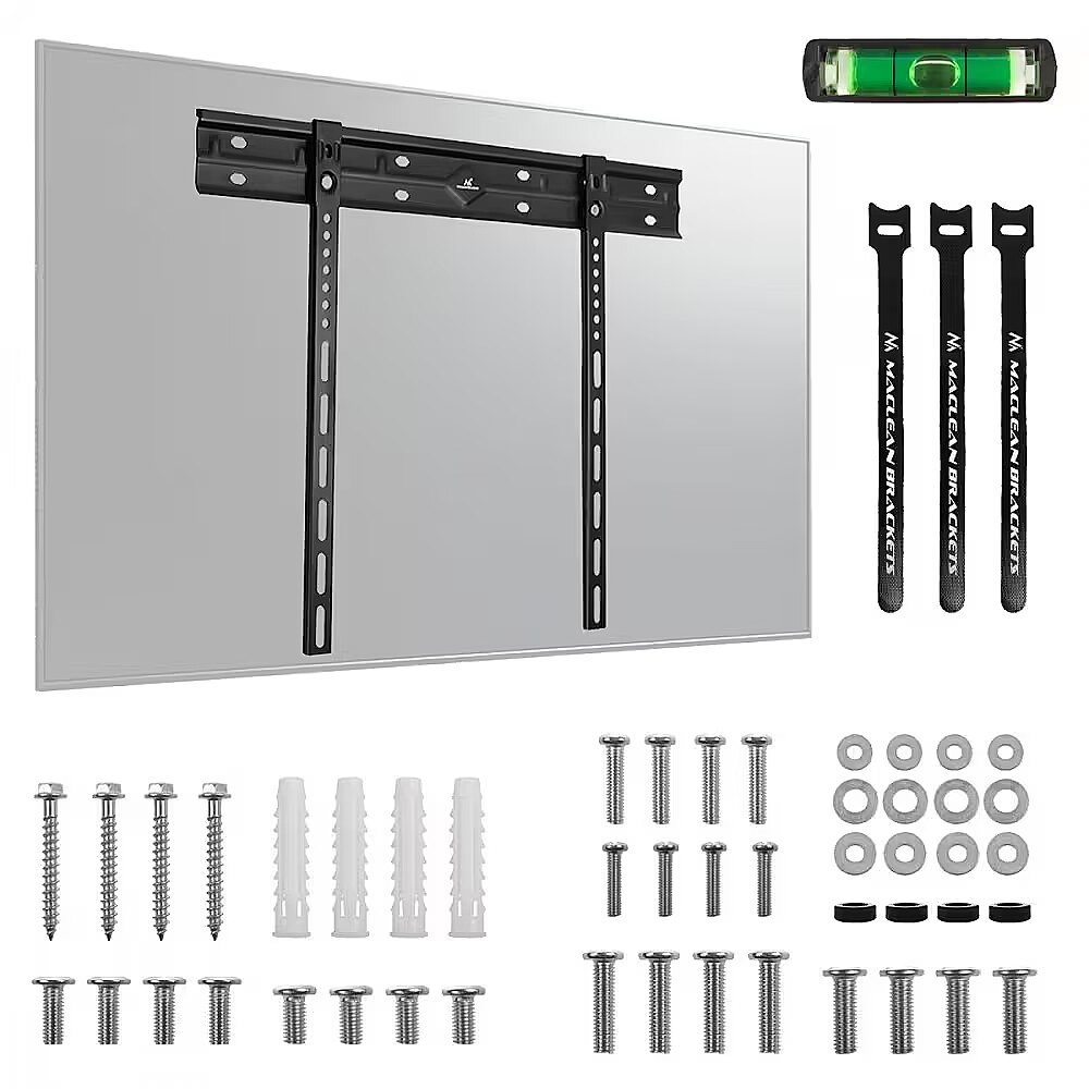 Accessories included - Maclean MC-123 ultra-flat wall mount for TV Set of mounting screws for the wall and for attaching the TV Level Mounting accessories Installation instructions Manufacturer's packaging