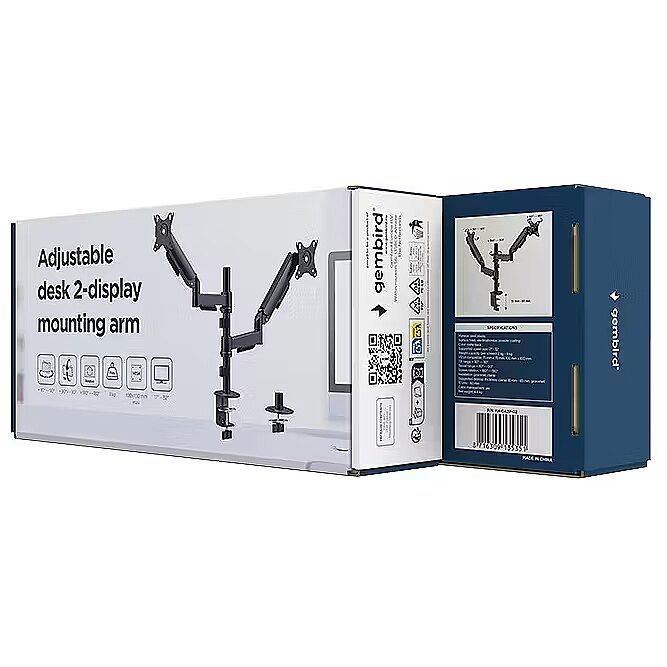 Gembird Adjustable desk 2-display mounting arm, 17-32"