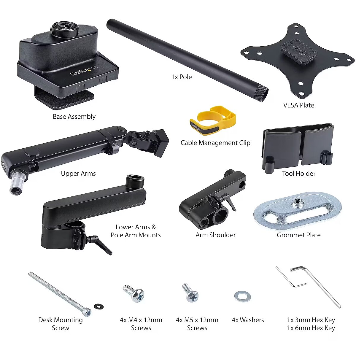 ShortSummaryDescription - StarTech.com Desk Mount Monitor Arm, Up to 40-inch Screen/17.6lb (8kg), Mechanical Spring-Assisted Arm, C-Clamp/Grommet, Top-Down Installation, Toolless Adjustment, 8 kg, 43.2 cm (17"), 101.6 cm (40"), 100 x 100 mm, Height adjustment, Black