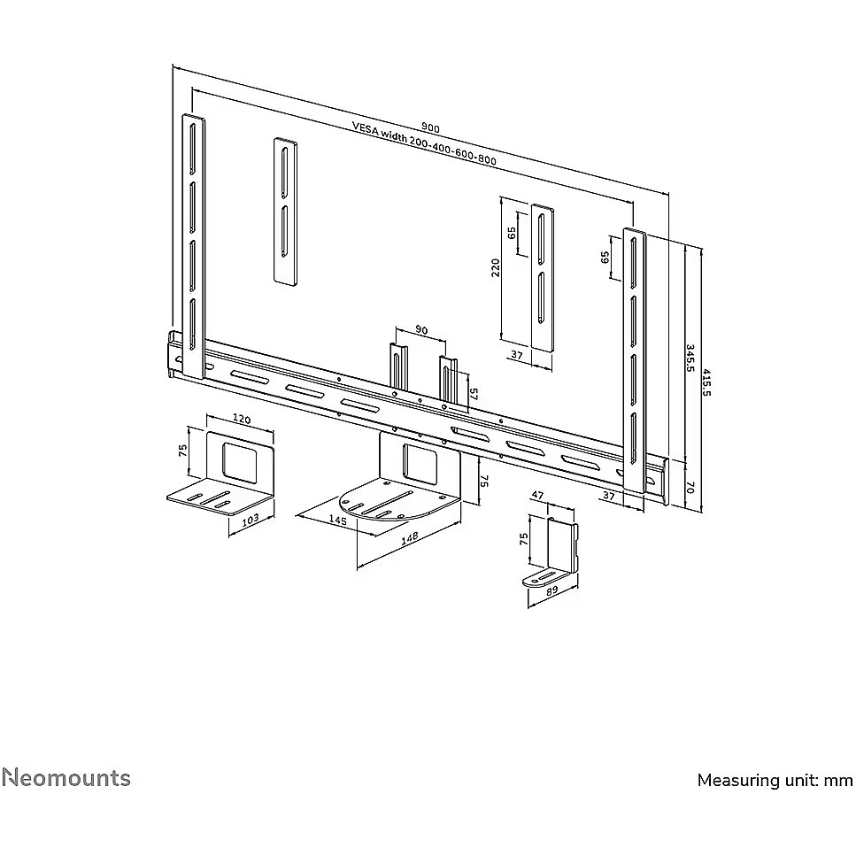 LongDesc - The Neomounts AV50-500BL is a universal PTZ/UC camera shelf kit designed for 43" displays and larger, with VESA hole patterns ranging from 200x200 up to 800x600 mm. Built for durability and versatility, the kit supports devices up to 5 kg and can be installed either above or below the display. Both the camera support and the backplate brackets are height-adjustable for maximum flexibility.Compatible with virtually all* PTZ/UC cameras, the AV50-500BL guarantees broad applicability. The camera mounting allows both width and height variation, while the VESA frame adjusts in four positions (200/400/600/800). The kit is suitable for VESA orientated wall, floor, desk, and ceiling mounts. Despite its versatility, installation is simple and precise thanks to ruler-guided alignment.* The Neomounts AV50-500BL kit is truly universal, compatible with any PTZ/UC camera that fits within the bracket?s range (see line drawing). In addition, it is specifically designed for the following models:- Bose Professional VB-S- Poly Studio R30/X30/X32 and Studio V12- Logitech Meetup 2 and Rally Camera- Yealink MeetingBar A30, UVC20/UVC30 Room/UVC34/UVC40 and MeetingEye 400/600- Maxhub UC S05/S07/S10/S10 Pro/S15- Predia Connect CameraFor detailed compatibility with specific models or mounting sizes, please refer to the online manual.