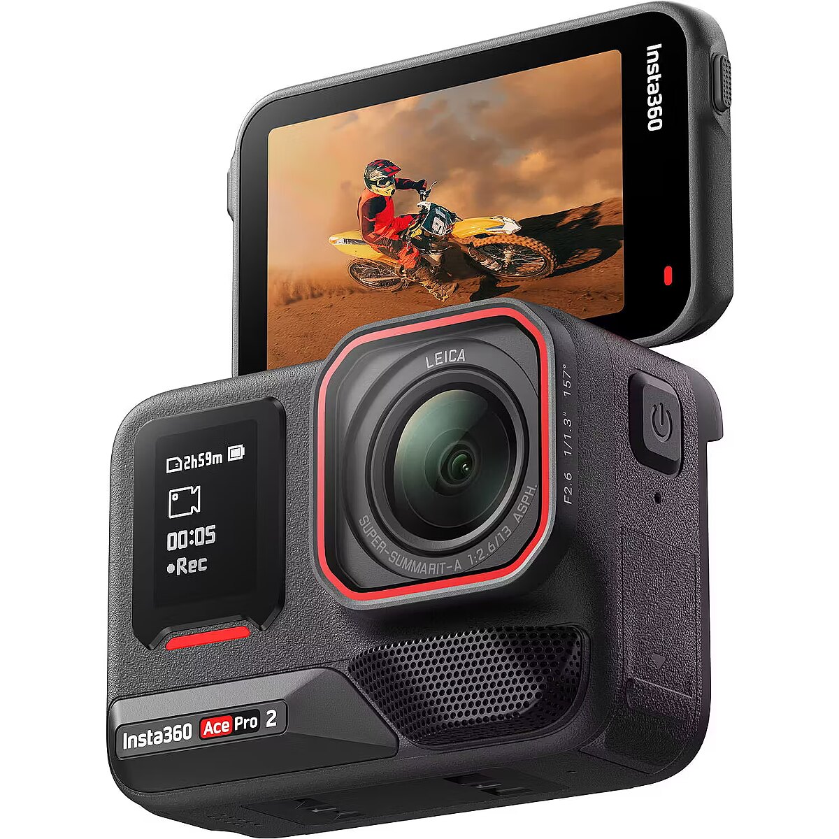 Rock-solid clarity, super high frames. Smoother, clearer action, Insta360 Ace Pro 2 handles whatever you throw at it. Wider views, less distortion 157° wide-angle lens. Capture it all and then some. A wider field of view takes POV shots to the next level. Perfect for creating a sense of speed on two wheels! MegaView. Less distortion and straighter, cleaner edges. MegaView unlocks a wider FOV, keeping your shot picture-perfect and exactly as you saw it. Ready for action All-new wind guard
