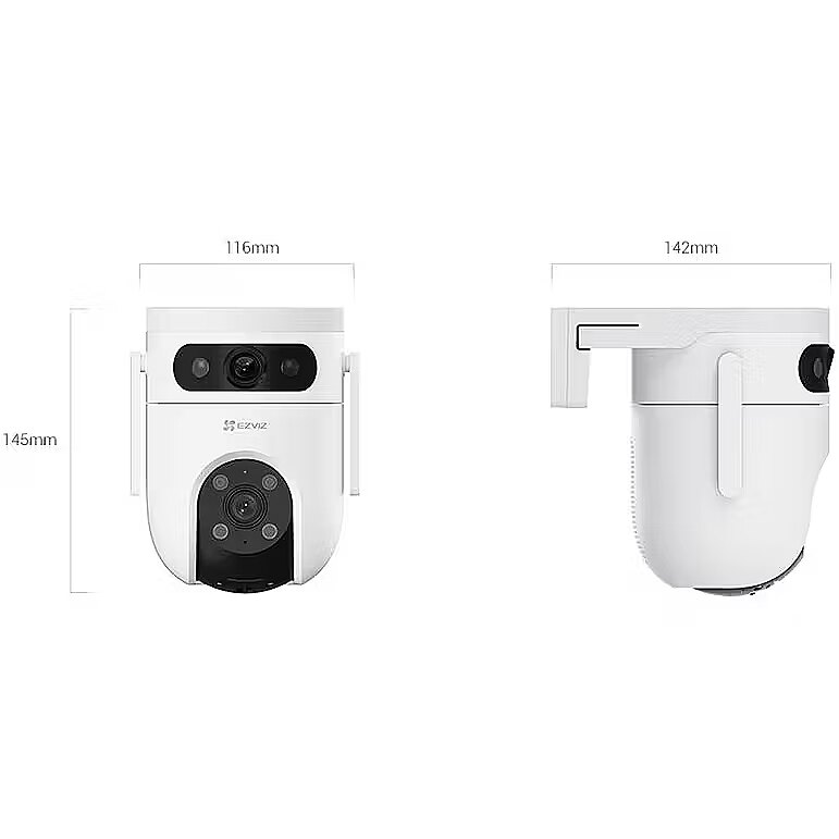 EZVIZ H9c Dual 3K kaamera kasutab kahte objektiivi, et pakkuda laia vaadet ja selgeid detaile. Ülemine lainurkobjektiiv ja alumine telefotoobjektiiv töötavad koos, et katta suuremaid alasid ja tagada, et igas suunas oleks näha olulised tegevused.