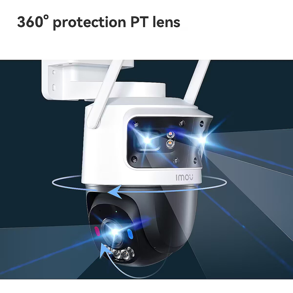 You can click anywhere in the screen of fixed lens in the app, and the PT lens will immediately turn to the position you pressed, quickly focusing on what you want. Exceptional clarity and image quality 3+3+5MP HD clarity matrix: The Cruiser Triple has a fixed lens resolution of 3+3 MP and a PT lens resolution of 5 MP, giving you an experience of unparalleled clarity. 160° dual-angle fixed lens coverage: The Cruiser Triple has a fixed lens resolution of 3+3 MP and a PT lens resolution of 5 MP, giving you an experience of unparalleled clarity. 360° protection PT lens: The Cruiser Triple's PT lens supports 0°-355° horizontal rotation and 0°-90° vertical rotation for 360° defense of your home. Light the night up with smartness