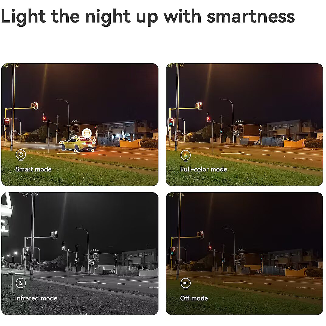 Cruiser Triple can adjust different night vision modes according to your needs, whether you want the night vision to remain in full color all the time or want to turn on full color only when there is an event to save energy, it can always satisfy you. Smart mode. The camera will automatically turn into color mode from infrared mode when suspicious motion is detected. Full-color mode. With built-in spotlights, the picture will be full color all the time. Infrared mode. Advanced IR algorithm provide clear black-and-white pictures even in darkness. Off mode. Turn all night vision modes off completely to save power consumption. MAX recording, MAX saving. Powered by IMOU AOR