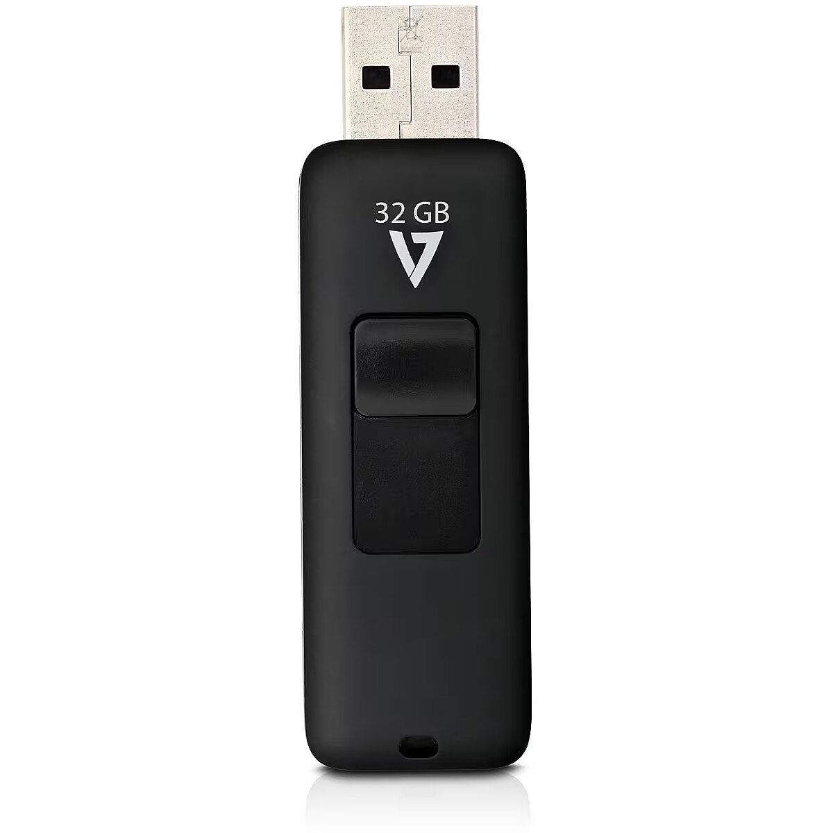 ShortSummaryDescription - V7 VF232GAR-3E, 32 GB, USB Type-A, 2.0, 15 MB/s, Slide, Black