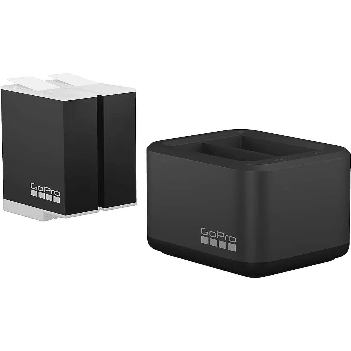 Conveniently charge two GoPro batteries simultaneously, plus give your camera an extra boost. This pack includes a Dual Charger and two advanced Enduro batteries that dramatically improve your HERO10 or HERO9 Black’s performance in cold weather to power through ski, snowboard and other winter shots at lower temperatures than ever before. They also extend recording times by up to 40% in moderate temperatures. Enduro Battery Advanced 1720mAh lithium-ion battery boosts camera performance over standard GoPro batteries across a wide temperature range Increases recording time in both HERO10 Black and HERO9 Black with up to 40% improvement in HERO10 Black using high-performance settings Dramatically improves cold-weather performance in temperatures down to -10°C Up to 13% faster charging rate than standard GoPro batteries Dual Battery Charger Optimizes charging so you’ll get a fully charged battery as quickly as possible Charges via USB-C port; for charging up to 38% faster, use with the optional GoPro Supercharger Dual LED lights display charging status of both batteries Works with Enduro and standard GoPro batteries