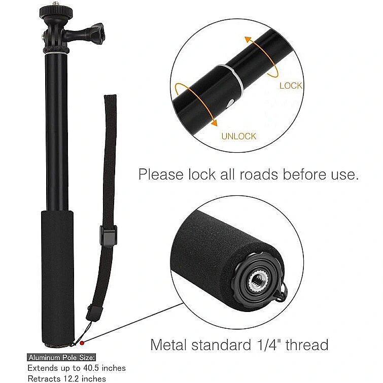 description_en - Extend the capabilities of your GoPro® by getting closer to the action and capturing unique angles. Shoot your subject with stability and precision, or flip the camera around on the swivel head to capture 180° POV angles of yourself. Extension pole for GoPro cameras Extends up to 92 cm 31 cm when collapsed Durable yet lightweight