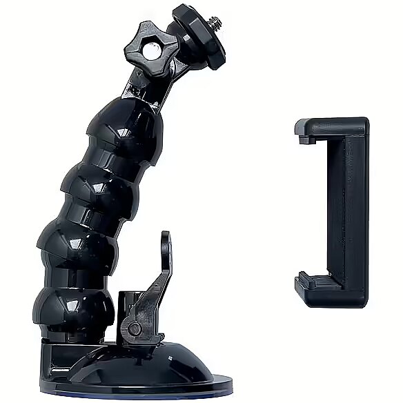 Практичное крепление на присоске для приключенческих камерУдобно крепится к гладкой поверхностиАдаптер для телефона в комплекте