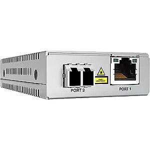 LongDesc - Gigabit Ethernet to Fiber Mini Media and Rate ConverterThis standalone mini media and rate converter features 10/100/1000T to 1000SX conversion with a multi-mode LC fiber connector and supports from 220 m to 500 m. It is compatible with the MMCR18 rack-mount chassis.Copper to Fiber Mini Media and Rate ConvertersOverviewThe Allied Telesis MMC Series of mini media converters leverages its smaller size to not only help the environment with a small carbon footprint, but also to save space in its working environment. Despite its compact size, the MMC Series delivers all the power and functionality of standard size media converters.Extend NetworksThe MMC Series are available in 100Mbps or 1000Mbps models. Depending on the model chosen, the fiber-optic port has options for fixed SC, ST, LC or SFP connectors capable of multi-mode or single-mode fiber connectivity. The twisted-pair copper port has an RJ-45 connector supporting either 100Mbps or 1000Mbps, with a maximum operating distance of 100 meters (328 feet).VLAN SupportMany new backbone switch products now support the industry-standard IEEE 802.1Q specification for Virtual LANs (VLANs) that send extra-long data packets on the network. The MMC Series are fully compatible with these long packets, enabling them to be used in modern networks. Media converters not supporting this feature discard these extra long packets, making them unsuitable for modern networks.Small and FlexibleThe smaller size and external power supply of the MMC Series allows them to be used almost anywhere.Smart MissingLink (SML)The Smart MissingLink™ (SML) feature monitors network connections and provides notification when network segments fail, allowing network managers to quickly identify the source and location of failed segments and minimize downtime.Smart Link RestorationSmart Link restoration allows the devices, in cases of power failure, link loss or other interrupted service, to automatically restore the link without the need to restart/reset them.Power SavingThe MMC Series continues the Allied Telesis commitment to the environment with over 50% power savings. With just 1.7W of power usage, the MMC Series media converters are some of the most efficient in the market today.Link TestThe link test is a fast and easy way for you to test the connections between the media converter ports and the connected end nodes. If a network problem occurs, you can perform a link test to determine which port is experiencing a problem, and focus your troubleshooting efforts on the right cable or end node.
