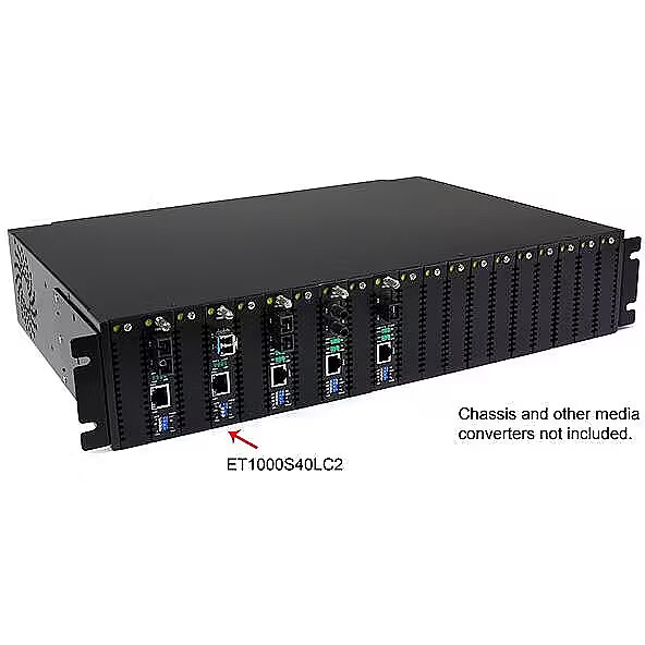 LongDesc - Convert and extend a Gigabit Ethernet connection up to 24.8 miles/40km over Single Mode LC fiberThe ET1000S40LC2 1000 Mbps Gigabit Single-Mode Fiber Media Converter (LC, 40 km) enables you to extend a Gigabit Ethernet network over single-mode fiber, at distances up to 40km (25 miles).A cost-effective solution for connecting a Gigabit Ethernet (1000Base-T) network to remote network segments over a (1000Base-LX/SX) fiber backbone, the GbE to SM fiber converter supports full Gigabit speeds for ideal network performance and scalability. Designed to offer a durable and convenient Ethernet to fiber solution, the Ethernet to LC Fiber converter features an all-steel chassis, and a simple plug-and-play installation with minimal configuration required.For added versatility, this fiber media converter supports standalone operation, or installation into the 20 Slot, 2U Rackmount Chassis (ETCHS2U).Backed by a StarTech.com 2-year warranty and free lifetime technical support.The StarTech.com Advantage- Link loss forwarding, remote monitoring of status ensures maximum up-time- Provides Ethernet to Fiber conversion as a standalone device, or can be installed into the ETCHS2U 20 slot chassis for added versatility- Rugged steel casing for added durability in harsh environments- Cost-effective way to extend/bridge networks using fiber cabling