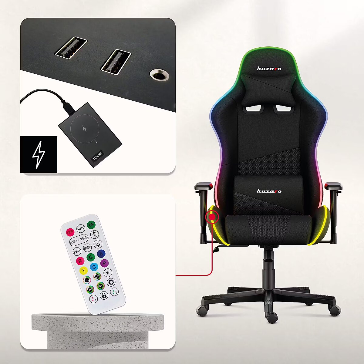 productName - Huzaro Force 6.2 RGB PC gaming chair Bucket (cradle) seat Black