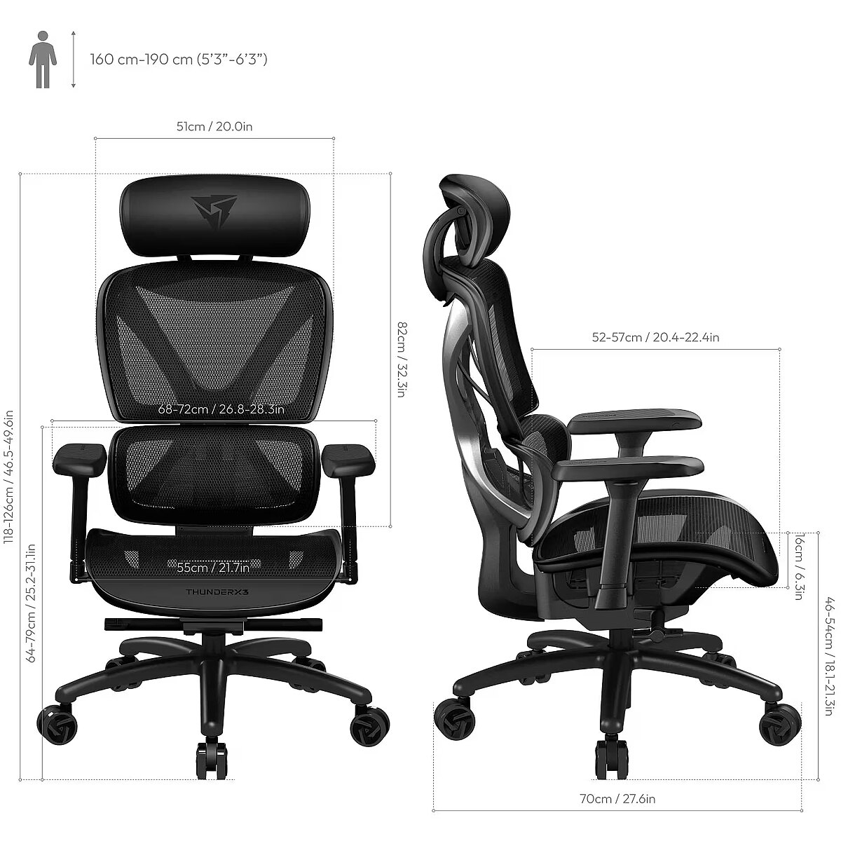 name - ThunderX3 XTC-Mesh Gaming Stuhl - schwarz