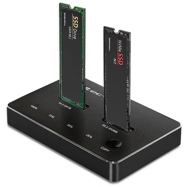 The second option is an offline copy function. All you need to do is place two drives in ports A and B, where the capacity of the B drive relative to the A drive should be greater or equal and turn on the power. Copying starts when the COPY button is held down.