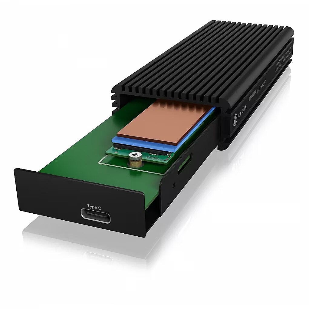 Description - External Type-C enclosure for M.2 NVMe SSD High-grade aluminium enclosure with innovative heat sink design