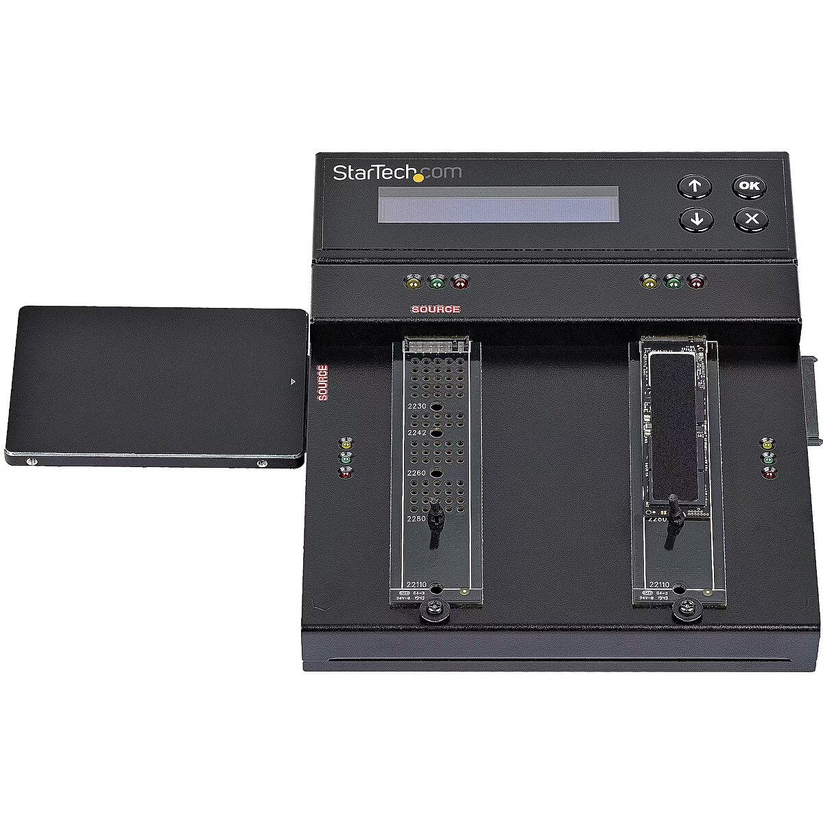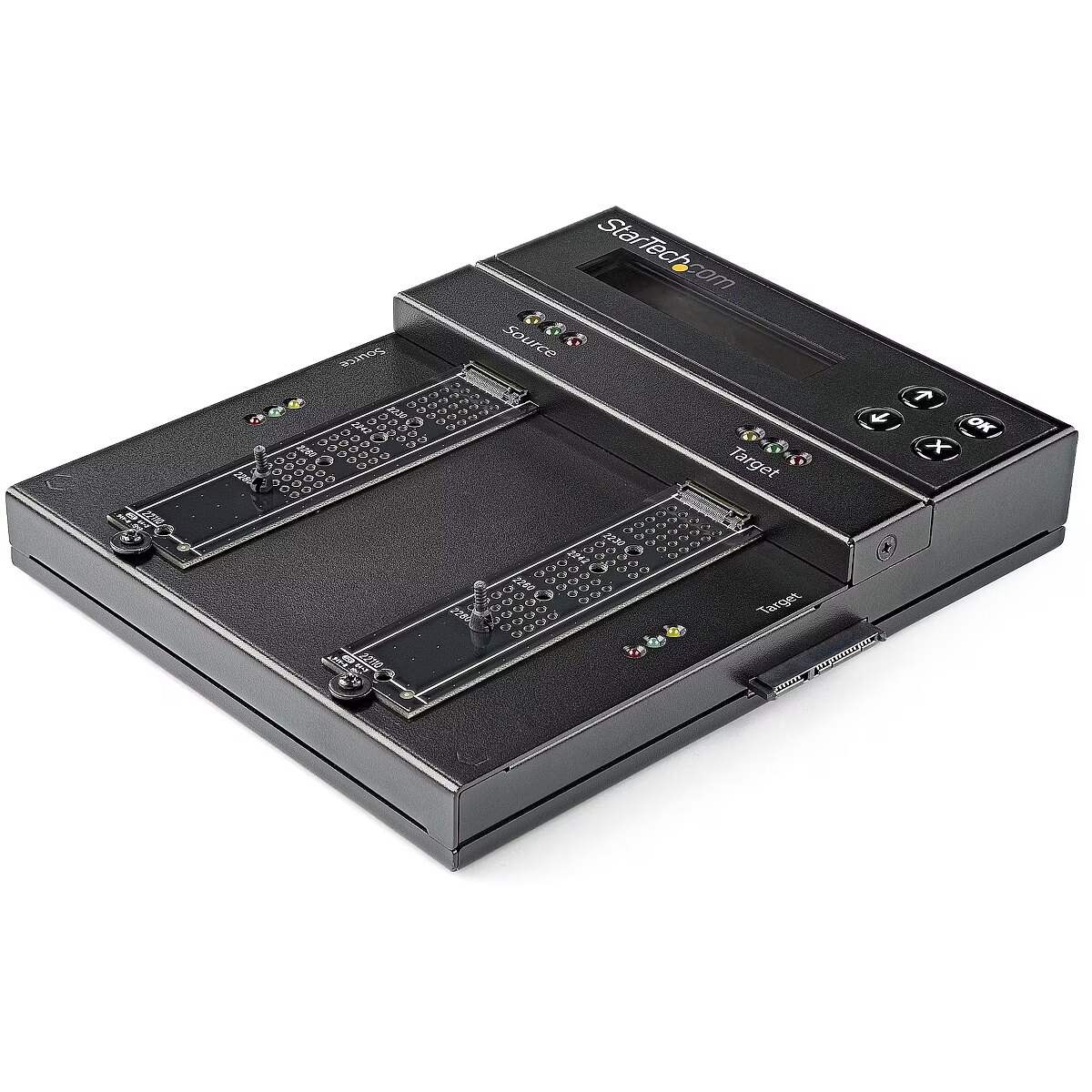 ShortSummaryDescription - StarTech.com Standalone M.2 SATA & M.2 NVMe Duplicator and Eraser - HDD/SSD Cloner/Wiper for M.2 PCIe AHCI/NVMe, M.2 SATA, 2.5/3.5" SATA Drives - External Hard Drive Eraser/Duplicator, TAA, HDD/SSD duplicator, 1 copies, SATA, Black, Metal, Copy, Erase