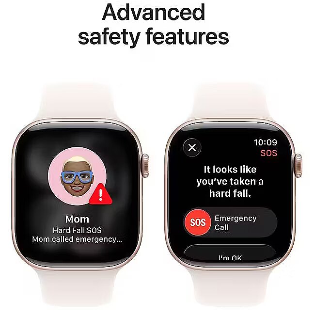 Packed with innovative safety firsts, Apple Watch Series 11 has your back. It’s designed to summon help when you need it most — even if you can’t reach your iPhone. Emergency SOS. ASAP. Need urgent help? Just press and hold the side button on your Apple Watch Series 11 to try to call emergency services and share your location. Fall Detection at the ready. If Series 11 detects that you’ve taken a hard fall, it can automatically help connect you with emergency services, provide dispatchers with your location, and notify loved ones. Crash Detection. Your guardian on the go. If you’ve been in a severe car crash, Series 11 can automatically help call emergency services, share your location, and notify your emergency contacts.