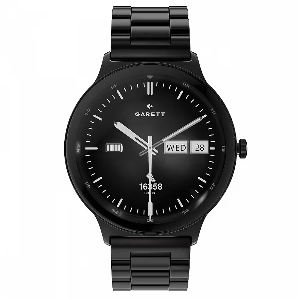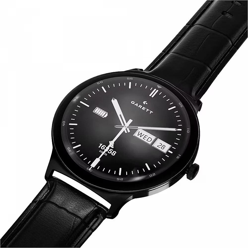 description_en - • Ultra-thin 7.5 mm construction for everyday comfort • AMOLED 1.43" display with Always On Display • Gorilla Glass screen protection • Up to 7 days on a single charge • Bluetooth calls + voice assistant • IP68 waterproof rating • 100+ sport modes + full health monitoring (HR, SpO₂, BP, stress, sleep, breathing training) • Dedicated Garett Smart app (Android/iOS) for watchface personalization and analytics