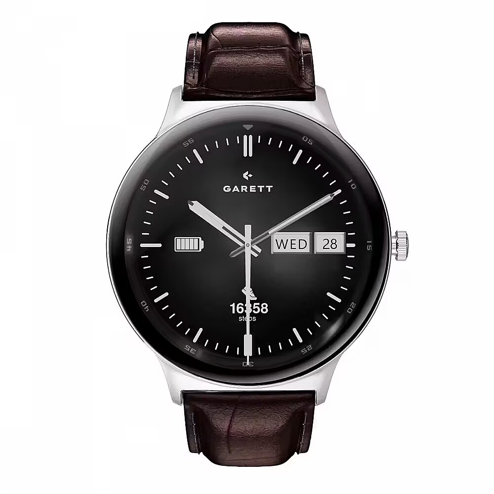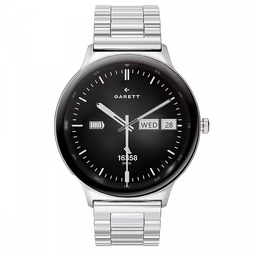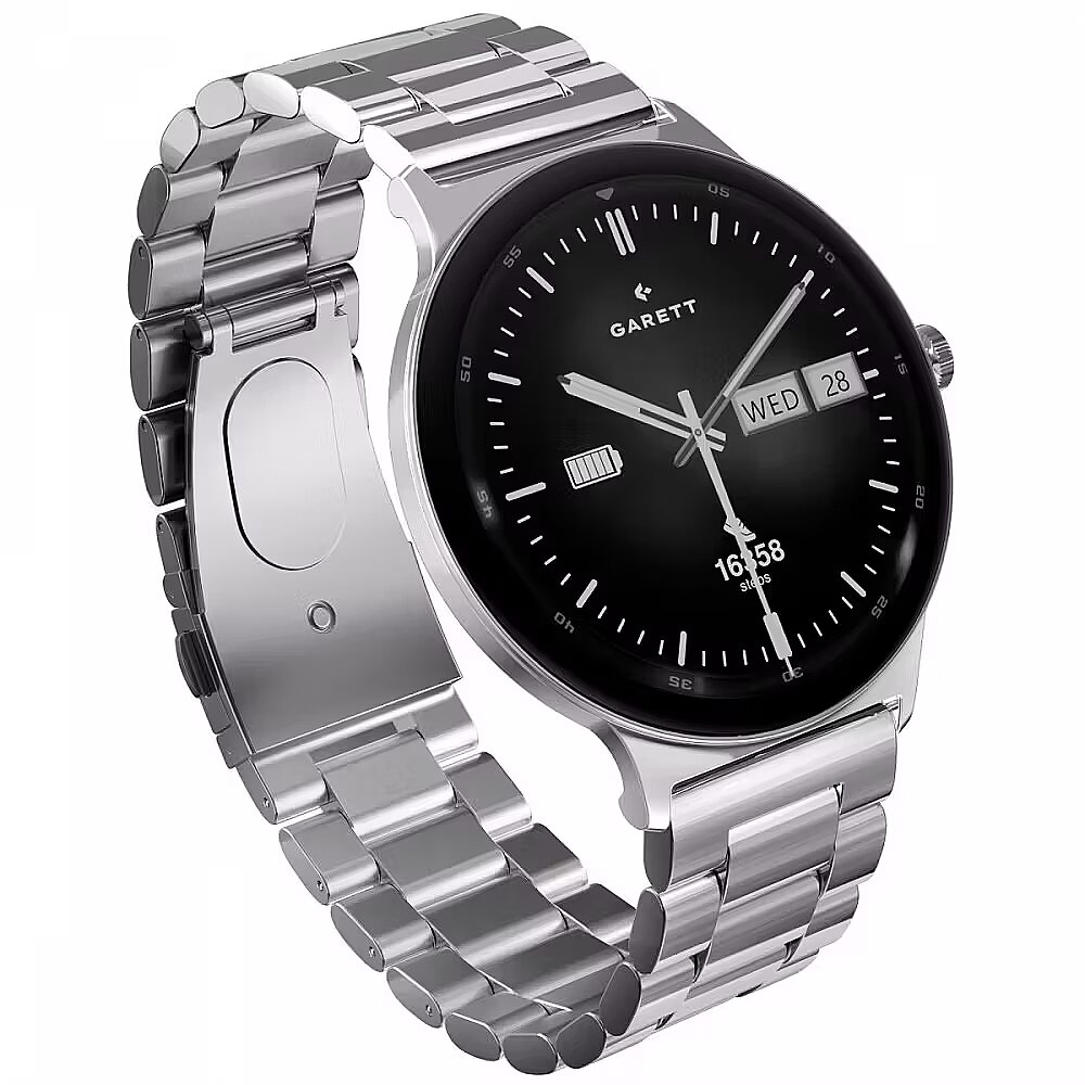 description_en - • Ultra-thin 7.5 mm construction for everyday comfort • AMOLED 1.43" display with Always On Display • Gorilla Glass screen protection • Up to 7 days on a single charge • Bluetooth calls + voice assistant • IP68 waterproof rating • 100+ sport modes + full health monitoring (HR, SpO₂, BP, stress, sleep, breathing training) • Dedicated Garett Smart app (Android/iOS) for watchface personalization and analytics