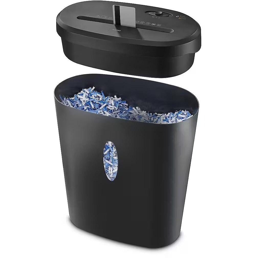 LongDesc - Cross-cut shredder for up to 12 sheets of DIN A4 paper (80 gsm) at a time, also shreds plastic cards in the paper intake.GDPR-compliantThis document shredder is ideal for destroying personal data in paper form in accordance with the General Data Protection Regulation (GDPR)Paper entry slot for plastic cardsPlastic cards can also be destroyed via the paper entry slotOverheating protectionThe device shuts itself off automatically to avoid damage on the deviceCopes with paper clipsHigh-quality cutters are made of special hardened steel and cope with paper clipsStaple-proofHigh-quality cutters are made of steel and cope with staples