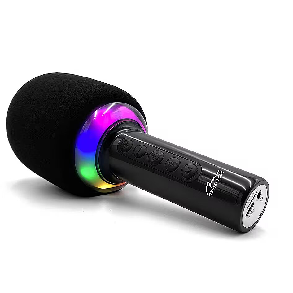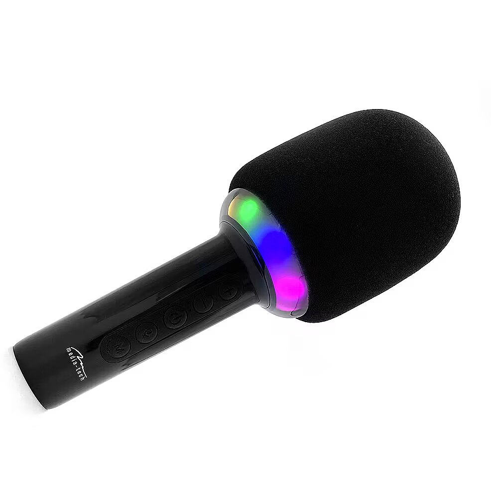 Description - Microphone with Bluetooth speaker KARAOKE IDOL BT MT399 Star-studded fun at your fingertips! Do you dream of karaoke without having to leave your home? KARAOKE IDOL BT MT399 you have your own karaoke wherever you want! The perfect gadget to get any party going and keep both kids and adults singing and having fun for hours. The wireless microphone with Bluetooth speaker guarantees that your music and voice will resound with the power you need to feel like a real star!   Voice Modulator Sing as you like! Who doesn't like to have a little fun with their voice? With the 5-mode modulator, you can not only sing, but also experiment with different voice sounds. Transform your voice LIVE, add a robot effect or other funny effects everyone will surely laugh out loud! The modulator is a real hit at parties and a great way to spice up any song. Every guest will find something for themselves and discover the hidden star of the stage within.   Impressive Disco Illumination Integrated multi-colour disco lighting adds magic to every karaoke party. Colourful lights in time with the music create an amazing atmosphere ideal for family evenings with children and meetings with friends! With this feature, your microphone not only plays but also lights up, attracting everyone's attention. Children will be delighted and adults will not be able to resist the temptation to grab the microphone and join in the fun.   Simple Operation and Many Possibilities Service KARAOKE IDOL BT MT399 is very simple pair the device via Bluetooth with your smartphone, launch the MP3 player, adjust the volume, and the echo effect will add a professional sound to your voice. Or maybe you have your favorite songs on a micro SD card? No problem, the microphone supports cards up to 64 GB, so you can have hundreds of songs at your fingertips!   Mobility and Power for Long Hours KARAOKE IDOL BT MT399 this device was created with comfort in mind the lithium battery provides up to 4 hours of continuous fun. With a range of up to 10 meters (at a distance from the smartphone), you can move freely around the entire room, feeling complete freedom on your private stage. The USB-C charging port guarantees fast charging, so after a short break the microphone is ready for another portion of hits!   Perfect for Everyone Regardless of age, KARAOKE IDOL BT MT399 is a gadget that will provide a lot of joy to anyone who loves having fun. It is light and comfortable, so it will be a great gift for children who love to sing and dance, as well as for adults who want to liven up the party atmosphere. Get your karaoke on and show who rules the stage!