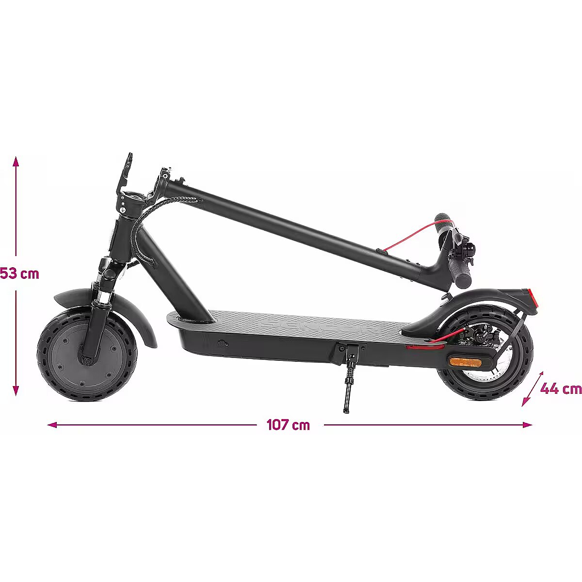 Other features - Aluminum construction The SENCOR SCOOTER application is available on Google Play and APP Store Built-in LED lighting Integrated LED display (mode, speed, battery, lighting, bluetooth) Maximum angle of inclination up to 15° 8.5-inch perforated tires front and rear Dual braking system - electric and mechanical Disc brake 24-month warranty also on the battery.