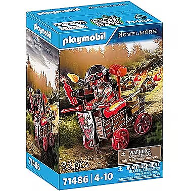 Description - Kahboom of the Burnham Raiders chases after the Novelmorians in his crazy racing cart, equipped with dynamite and flares. The Novelmore knights play world by PLAYMOBIL is full of adventures: Kahboom, the fire-crazed court jester of the Burnham Raiders, plunges into the action with his racing cart. Equipped with dynamite and torches, Kahboom is unpredictable. However, the Knights of Novelmore also know how to defend themselves. With great heroes, cunning villains, mysterious creatures, and clever weapons, Novelmore offers immense fun for creative children aged 4 and up. The play figure set includes a PLAYMOBIL figure, dynamite stick, hammer, torch, aviator cap, gloves, and many other exciting extras.