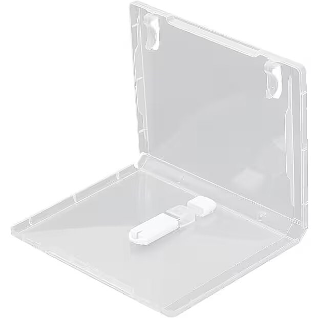 description_en - A box made of high-quality plastic for one USB flash drive. The case is very thin – only 14 mm thick. In addition, the inner cover of the box has fastening clips for fastening the leaflet. Case for one USB flash drive Made of transparent durable plastic Clips for attaching the pamphlet Slim design – 14 mm