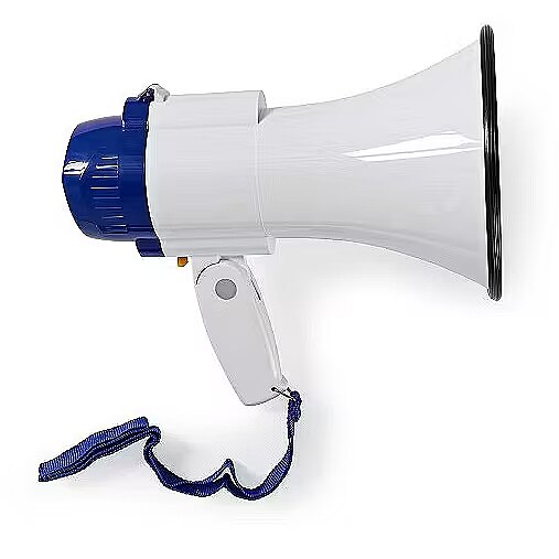 Need to speak for a longer period of time? Just hang the megaphone from your shoulder with the included strap,