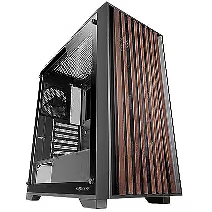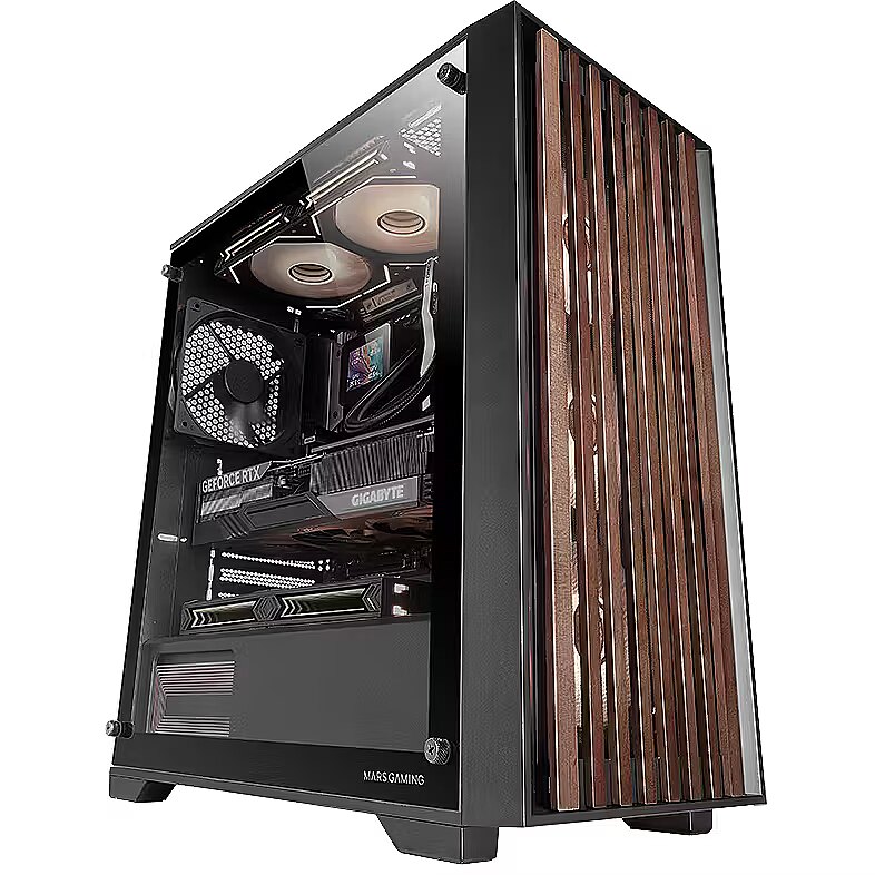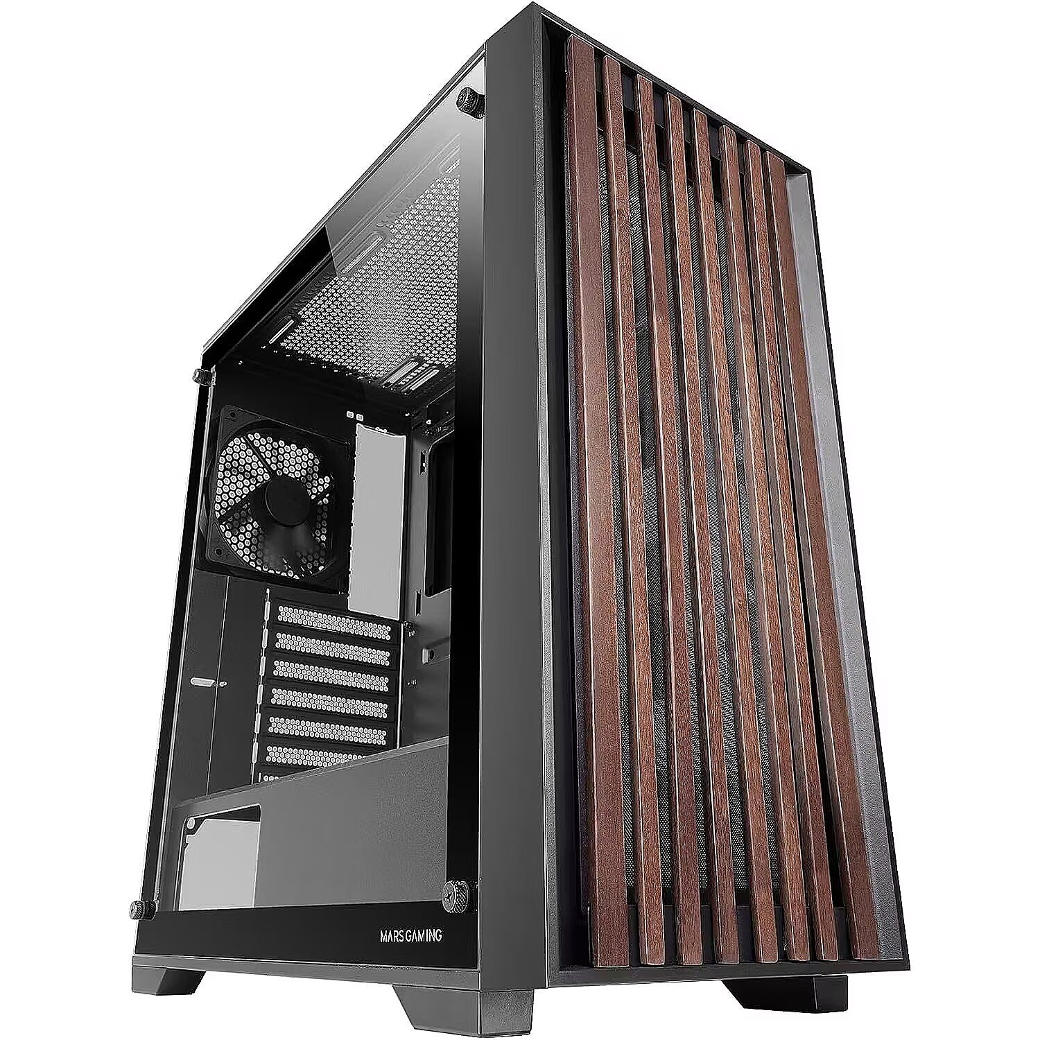 Mars Gaming MCWOOD Computer ATX Case with wooden slats / Tempered Clear Glass