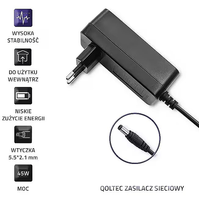 Name - Qoltec Zasilacz wtyczkowy 45W | 15V | 3A | 5.5*2.1