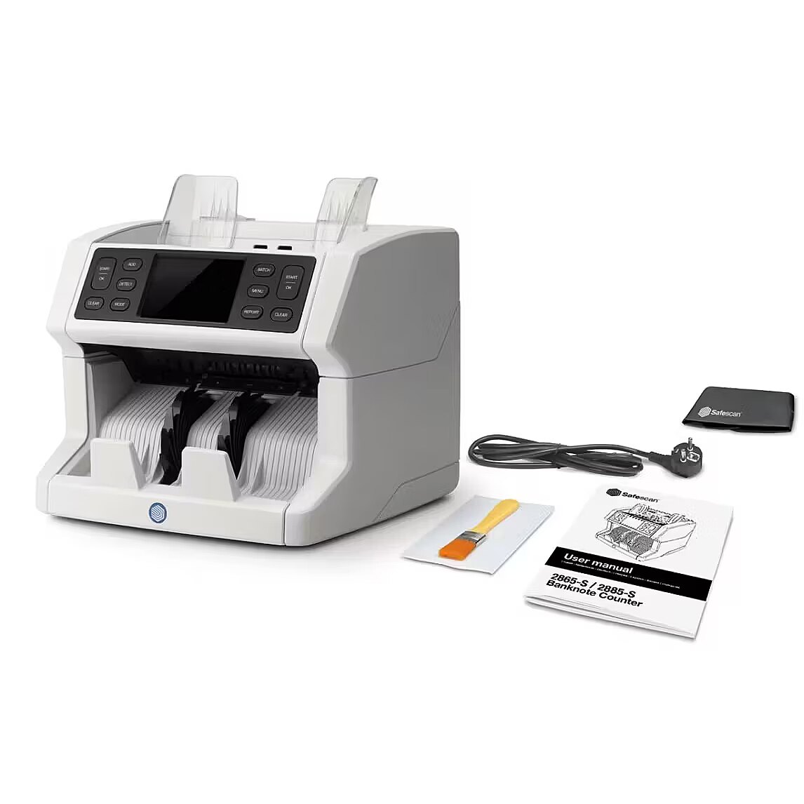 When counting banknotes it is possible for dirt and dust to end up in your machine. To ensure that your banknote counter is performing on the highest level, it is important that you clean it when this happens. The Safescan 2865-S is programmed to regularly display a maintenance message to notify you when cleaning is required. You can easily open the top of the Safescan 2865-S and clean the internal sensors using a brush, an air-duster, or our special cleaning cards. Your device is clean and ready in just a matter of seconds.