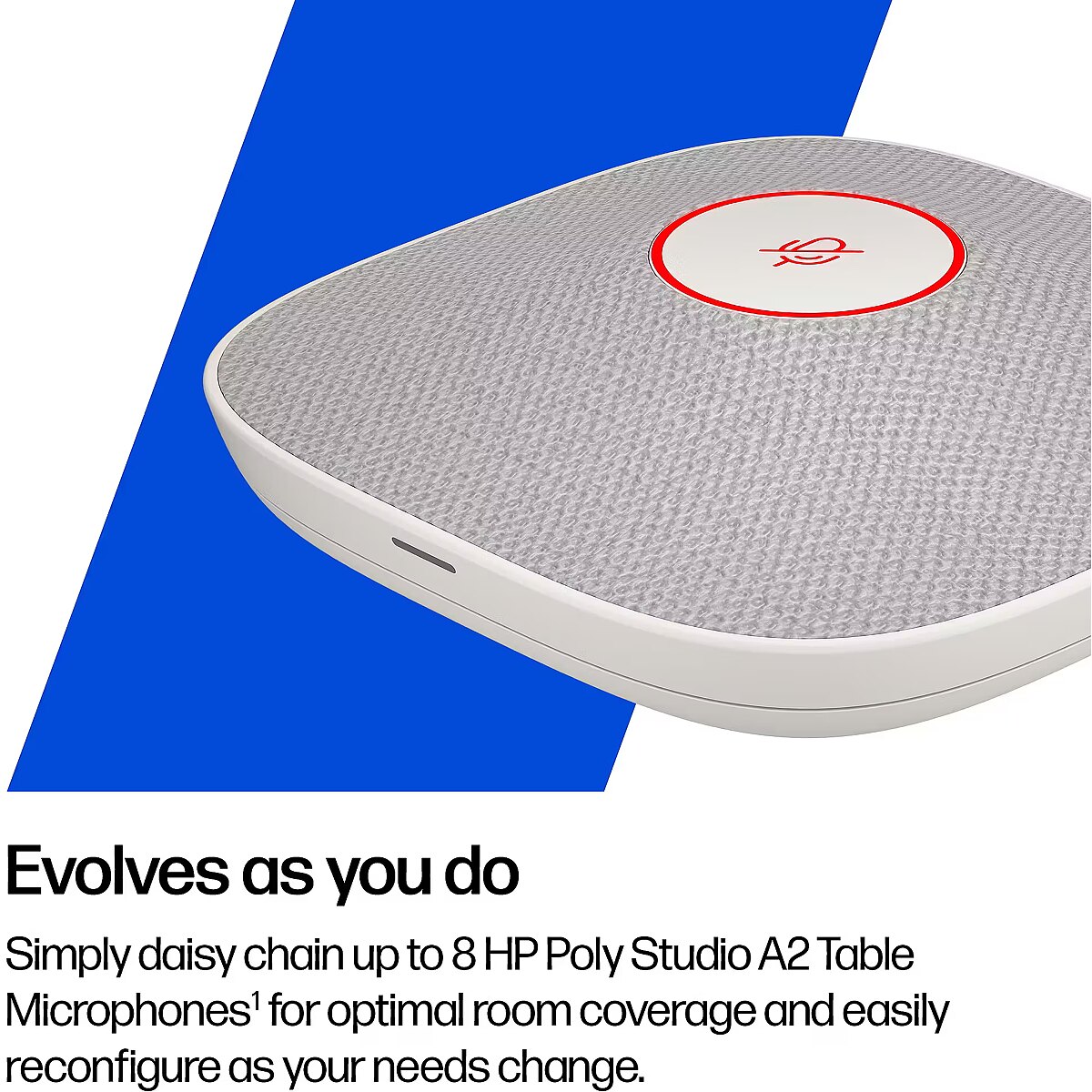 ShortSummaryDescription - HP Poly Studio A2, White, 6 m, Poly Studio G62: up to 8 Studio A2 table microphones; Poly Studio X72 and Poly Studio V72: up to 4..., -35 dB, Wired, 92 mm