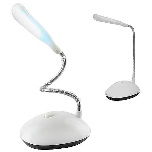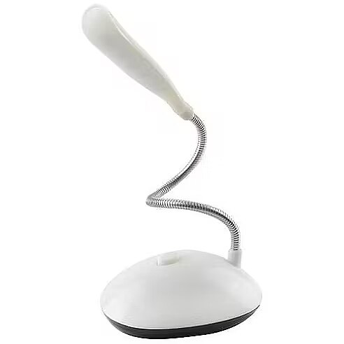The extremely flexible lamp neck can be rotated 360 °, furthermore, you can adjust the lamp on many different levels. This allows you a precise adjustment of the light cone and thus an optimal illumination of your workplace. The lamp is powered by 3 AAA size batteries, regardless of the power supply (Not included). The white and smooth shape of the case makes the lamp timeless and suitable for many different locations. In addition, the surface is easy to clean. The small dimensions and the constant battery power make our desk lamp an indispensable utensil for business trips.