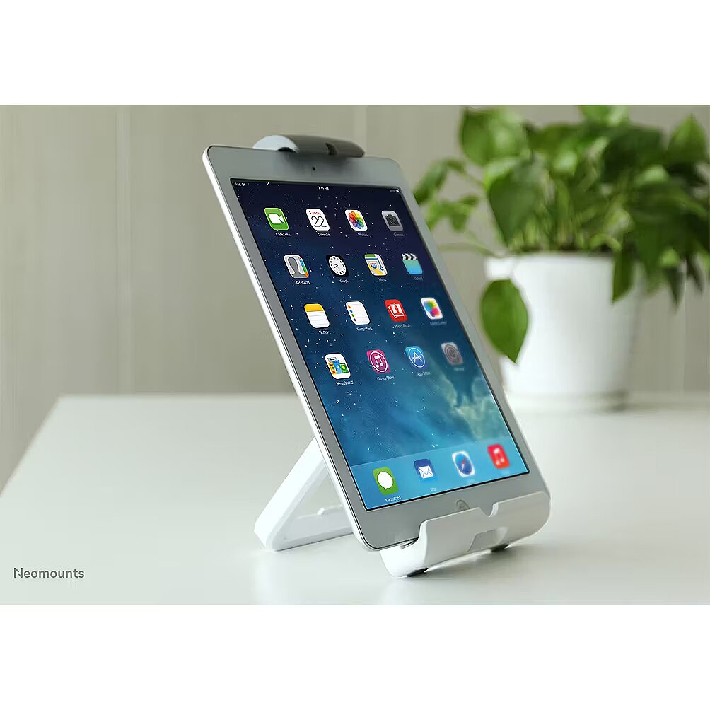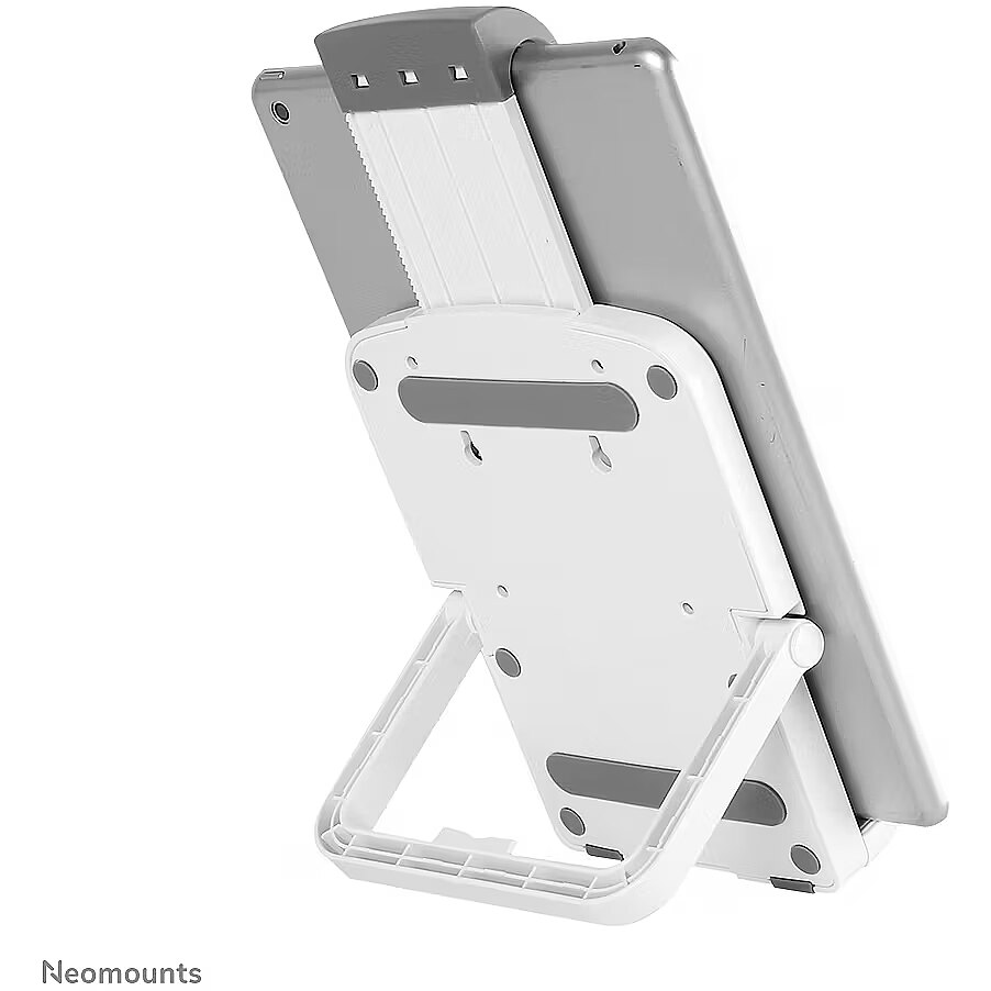LongDesc - The Neomounts tablet holder, model TABLET-UN200WHITE is a universal tablet mount offering the tablet maximum functionality. Available for most 7"-10.1" tablets. This desktop stand is a great choice for space saving placement or when wall or ceiling mounting is not an option. Most tablets are appropriate on this holder. Neomounts TABLET-UN200WHITE has a 120° tilt function for a good viewing angle. Ideal for use in offices and on counters or in a reception area.All installation material is included with the product.