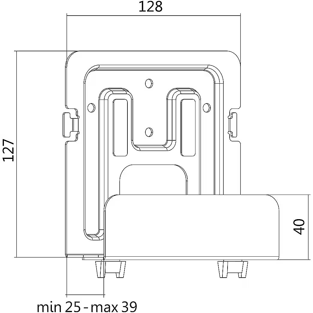 Other features - Mouting: Wall, 4 mounting holes Adjustable depth: 3246 mm; Inner dimension: 25-39 mm
