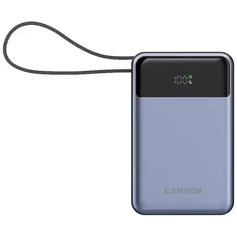 Canyon Power bank Canyon 20000mAh 65W LCD, built in cable, Dark Grey