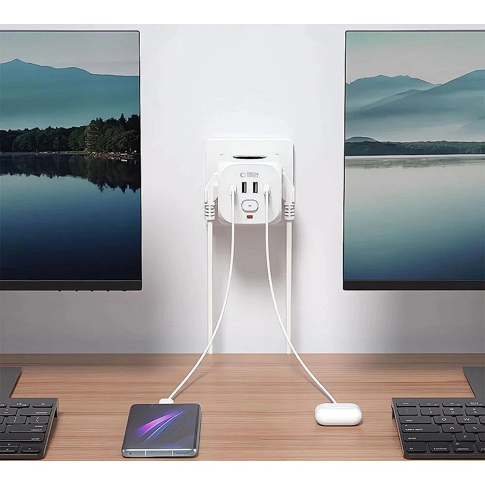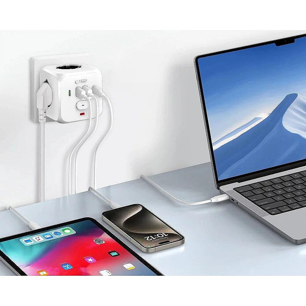 Tech-Protect power adapter PCL3X4 2xUSB/2xUSB-C, white