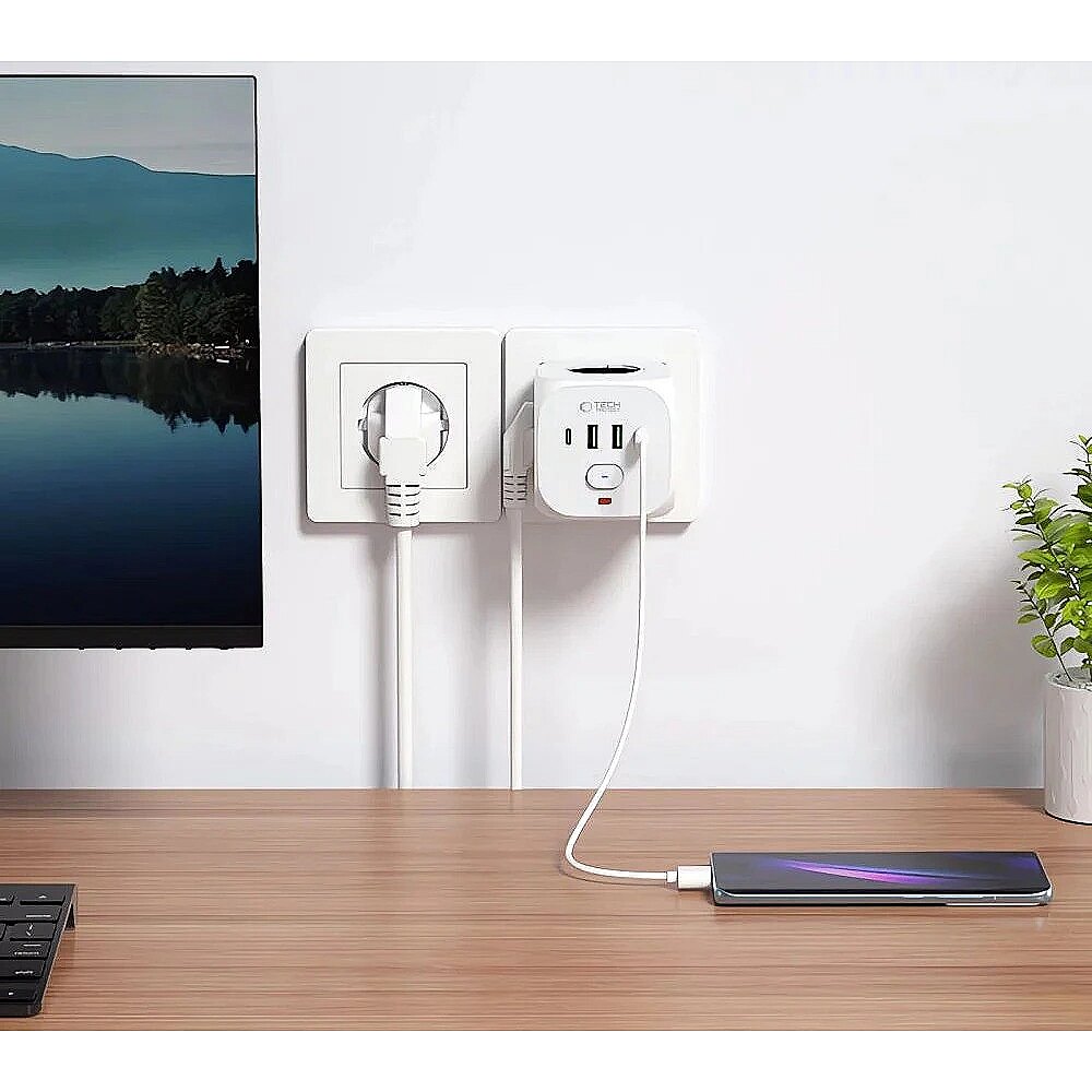 description_et - Tech-Protect PCL3X4 vooluadapter ühendab funktsionaalsuse ja kompaktse disaini. Selle harupistikuga saad samaaegselt laadida ja vooluvõrku ühendada mitmeid seadmeid, sealhulgas sülearvuteid, nutitelefone ja tahvelarvuteid. Vooluadapteril on kolm klassikalist voolupesa, kaks USB-A porti ja kaks USB-C porti, pakkudes laialdasi ühendusvõimalusi erinevatele elektroonikaseadmetele. Tänu kergele ja kompaktsele disainile sobib see ideaalselt kasutamiseks nii kodus, kontoris kui ka reisil. Sisseehitatud kaitsemehhanismid hoiavad ära ülekoormuse, ülepinge ja ülekuumenemise, tagades turvalise kasutamise igas olukorras. Lisaks võimaldab mugav sisse-/väljalülitusnupp kõiki ühendatud seadmeid kiirelt välja lülitada. 3 × Schuko voolupesa, 2 × USB-A & 2 × USB-C Sisendpinge: 100-240V 50/60 Hz Väljundpinge: DC 5V/2.1A Nutikas laadimistehnoloogia Täiustatud kaitsesüsteemid Kompaktne ja kaasaskantav disain