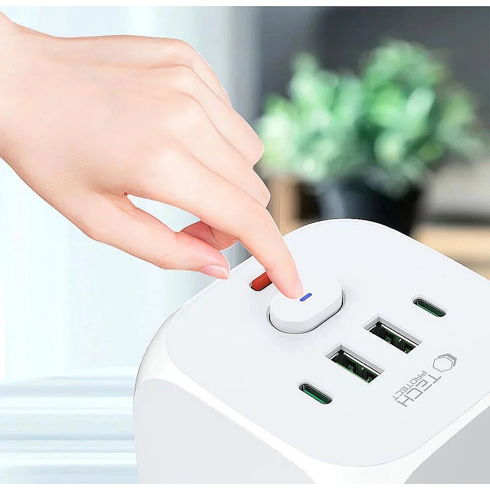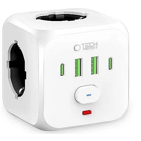 description_en - The Tech-Protect PCL3X4 power adapter combines functionality and compact design. With this power strip, you can simultaneously charge and power multiple devices, including laptops, smartphones, and tablets. The power adapter has three classic power outlets, two USB-A ports, and two USB-C ports, providing a wide range of connectivity options for various electronic devices. Thanks to its lightweight and compact design, it is ideal for use at home, in the office, and when traveling. Built-in protection mechanisms prevent overload, overvoltage, and overheating, ensuring safe use in any situation. In addition, a convenient on/off button allows you to quickly turn off all connected devices. Three power outlets, 2 × USB-A & 2 × USB-C Input voltage: 100-240V 50/60 Hz Output voltage: DC 5V/2.1A Smart charging technology Advanced protection systems Compact and portable design
