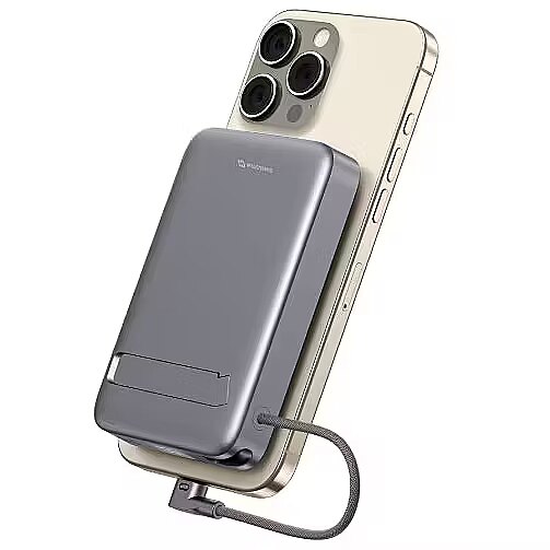 The power bank supports the latest PD and PPS protocols, delivering up to 35W of power. You can charge demanding devices like iPad, MacBook, or Samsung Galaxy in no time. Built-in USB-C Cable and Foldable Stand