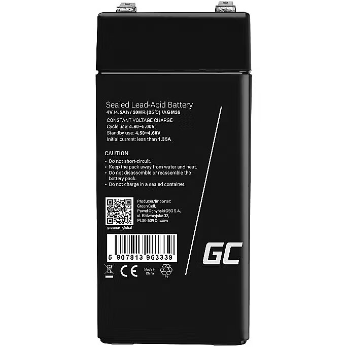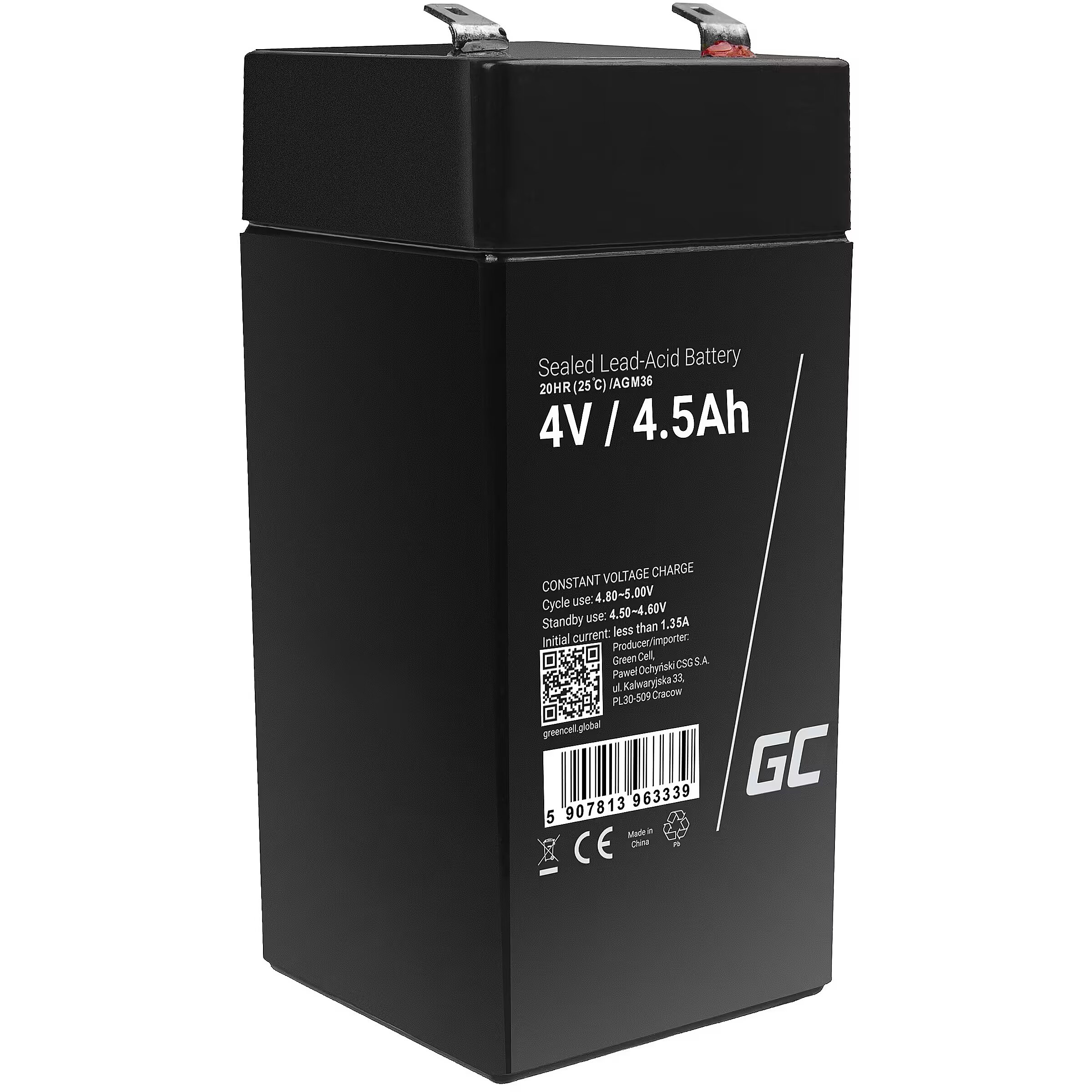 Green Cell AGM VRLA 4V 4.5Ah maintenance-free battery for the alarm system, cash register, toys