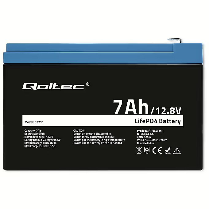 Qoltec LiFePO4 battery 12.8V 7Ah,89.6Wh,BMS