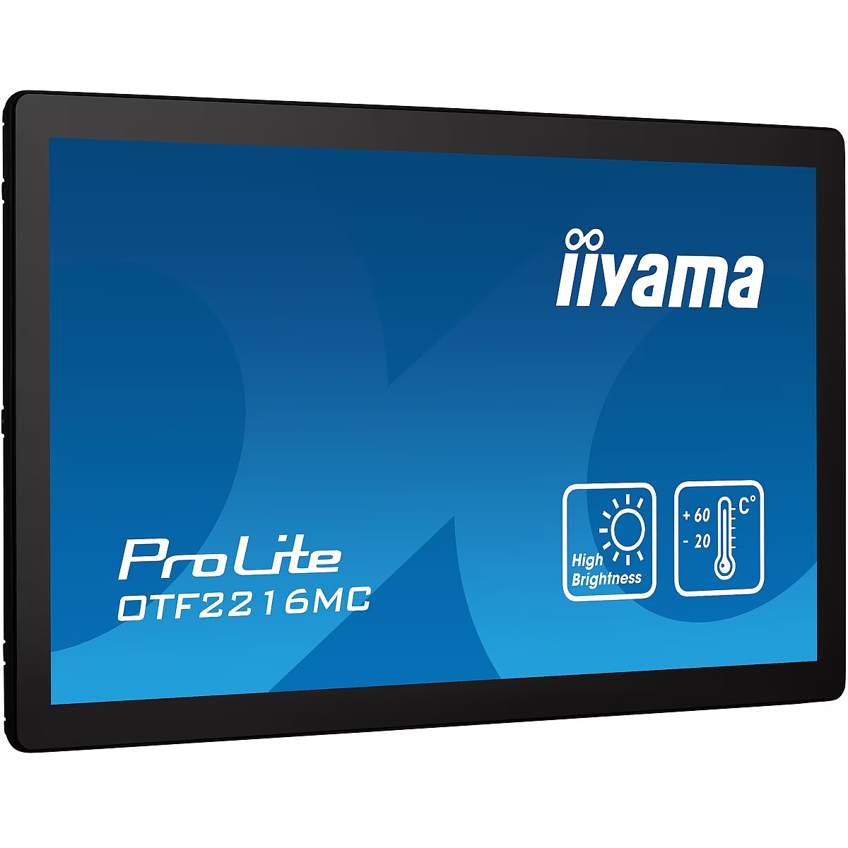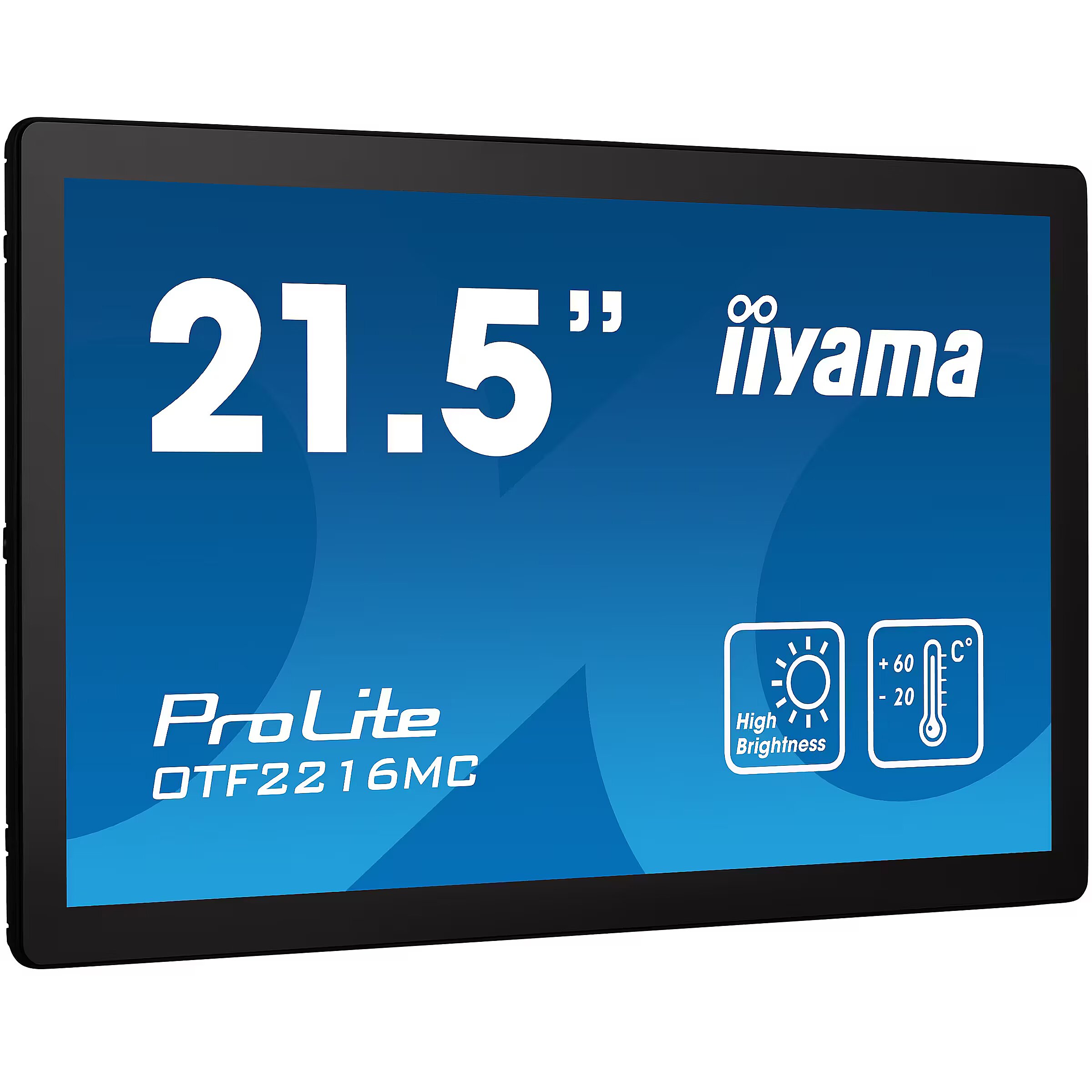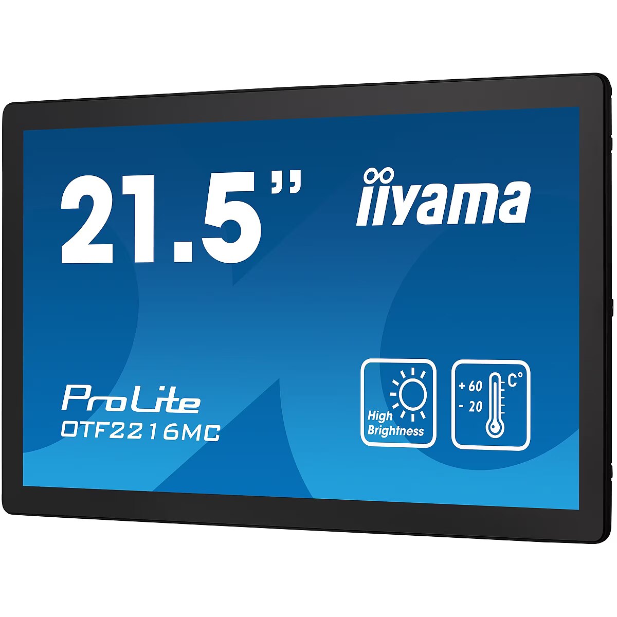 LongSummaryDescription - iiyama OTF2216MC-B1. Display diagonal: 54.6 cm (21.5"), Display resolution: 1920 x 1080 pixels, HD type: Full HD, Display technology: LCD, Response time: 25 ms, Native aspect ratio: 16:9, Viewing angle, horizontal: 178°, Viewing angle, vertical: 178°. VESA mounting. Product colour: Black