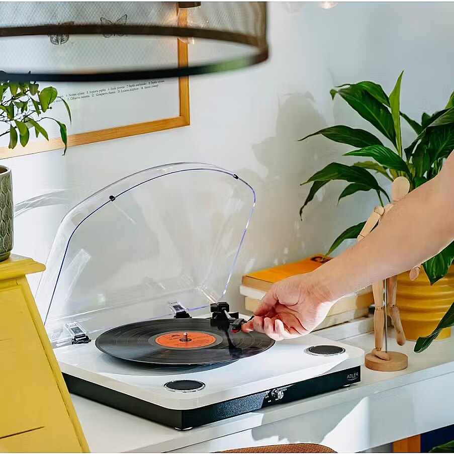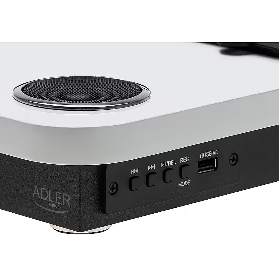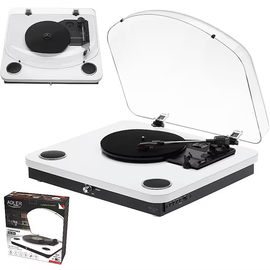 Description - Discover the magic of analog sound in a modern edition! The Adler AD 1914 is an elegant turntable that combines the classic warmth of vinyl records with modern features such as Bluetooth 5.4 and USB recording. Perfect for music lovers who value both style and functionality. Key Features: Three-speed playback - plays records at 33 1/3, 45, and 78 RPM, allowing you to enjoy your entire vinyl collection. Compatibility with various record sizes - supports 7", 10", and 12" vinyl. Built-in stereo speakers - 2 x 0.8 W output delivers clear and enjoyable sound. Bluetooth 5.4 playback - stream music wirelessly from your phone, tablet, or laptop. USB recording - digitize your favorite vinyl and save files directly to a USB drive. High-quality ceramic cartridge - ensures precise sound reproduction and longer durability. RCA output - connect the turntable to external speakers or an audio system. Belt drive and automatic tonearm stop - for stable and smooth operation. Included in the set: Non-slip mat - protects your records and enhances sound quality. 45 RPM adapter - for playing records in this format as well. With its stylish design, the Adler AD 1914 turntable fits perfectly into any interior, whether classic or modern. Enjoy your favorite music in analog quality and digitize your collection with innovative features.