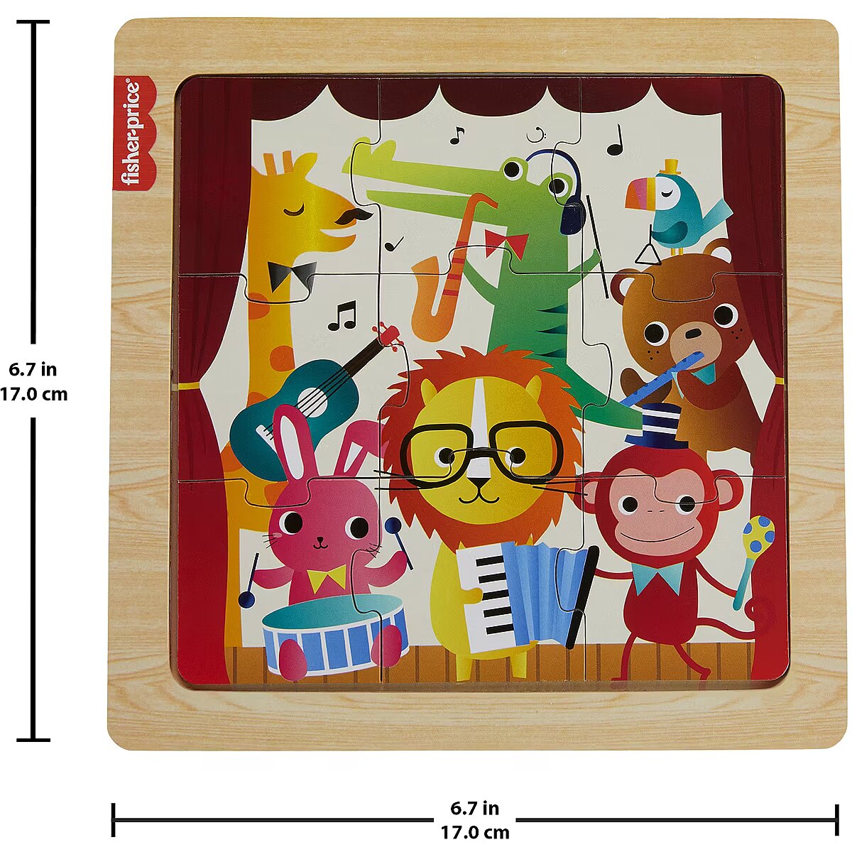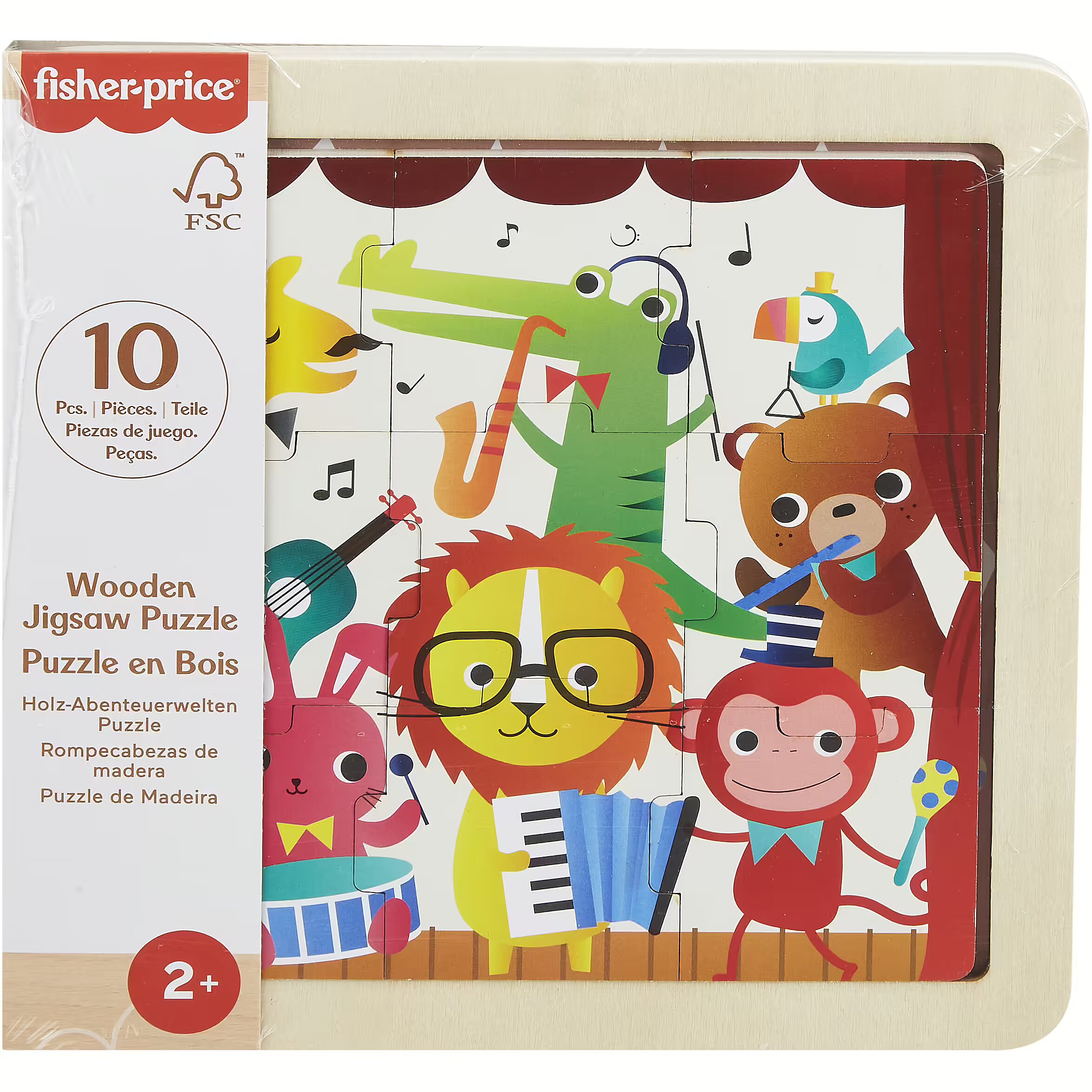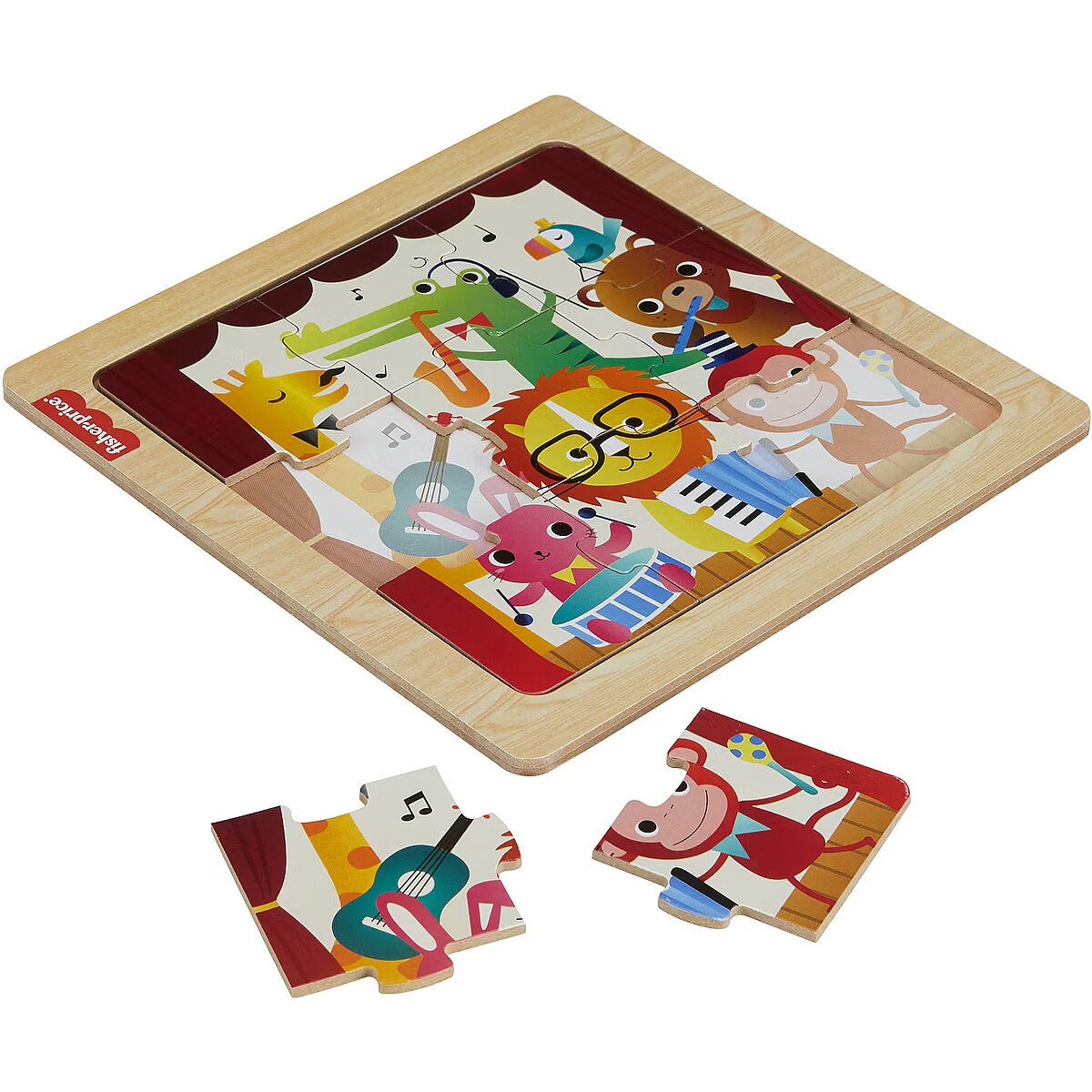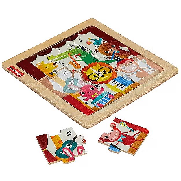 ShortSummaryDescription - Fisher-Price Wooden Jigsaw Puzzle Music Theme for Toddlers & Preschool Kids, 9 Wood Pieces, 9 pc(s), Animals, 2 yr(s)