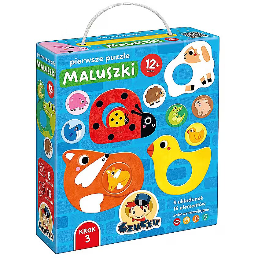 Pierwsze puzzle Maluszki to wyjÄtkowy zestaw edukacyjny dla najmĹodszych i pomysĹ na pierwsze ukĹadanki. W pudeĹku znajdziecie 8 duĹźych dwuelementowych tabliczek ze zwierzÄtkami, do ktĂłrych dopasowuje siÄ kĂłĹeczka z maluszkami. Uwielbiana tematyka i soczyste kolory inspirujÄ maluchy do zabawy!