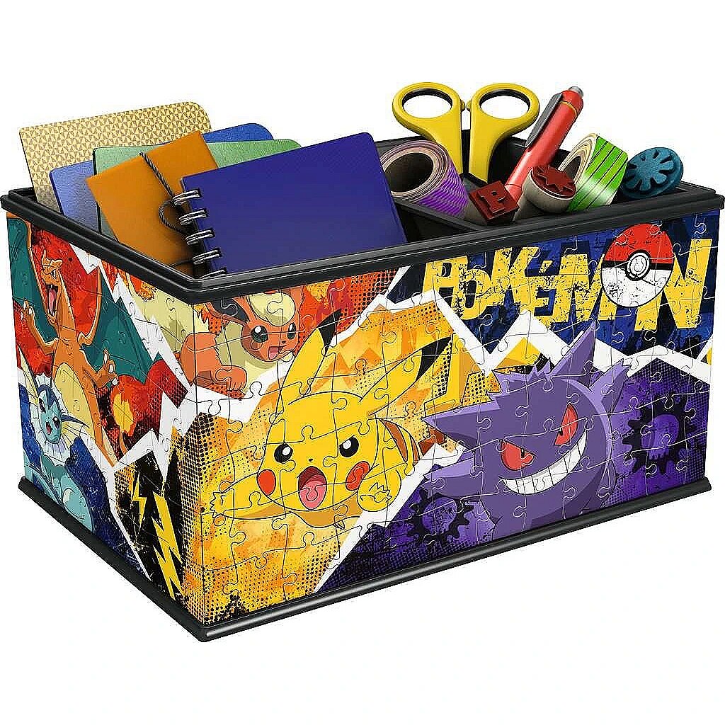 Description - 216 piece 3D jigsaw puzzle Pokemon Casket Create unique 3D constructions with 3D puzzles from Ravensburger! Discover a new, three-dimensional way of assembling puzzles their pieces are made of rigid plastic that allows the constructions to hold together without the use of glue. The stacked objects do not delaminate and the puzzles stick firmly to each other. A number is printed on the inside of each puzzle so that the ball is assembled according to the order of the pieces. The material used for the blocks is easy to clean, just use a damp cloth. A must-have item for all Pokemon fans who like puzzles and are looking for a place to put their trinkets! This is an unusual product that combines the possibility of playing with spatial puzzles and a practical container for school supplies, jewellery or other real treasures. The unique collection of 3D puzzle constructions is sure to delight every child and teenager. To create your own unique room decoration - simply assemble the practical container from sturdy plastic puzzles and your room will instantly take on a new character. Part by part, the large casket takes shape and you are immersed in the limitless world of Pokémon. The 3D jigsaw puzzle construction combines the pleasant with the useful: it develops spatial imagination, improves concentration, teaches patience, and when assembled, it can be used as a striking room decoration. The product is suitable for ages 8 and up.