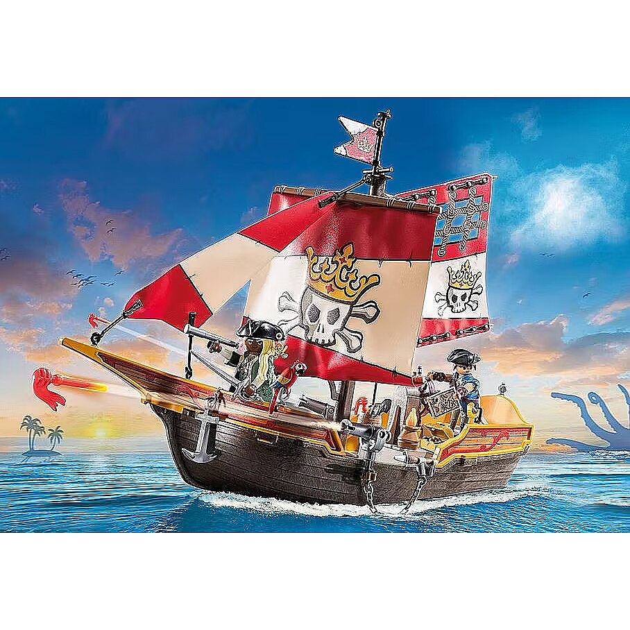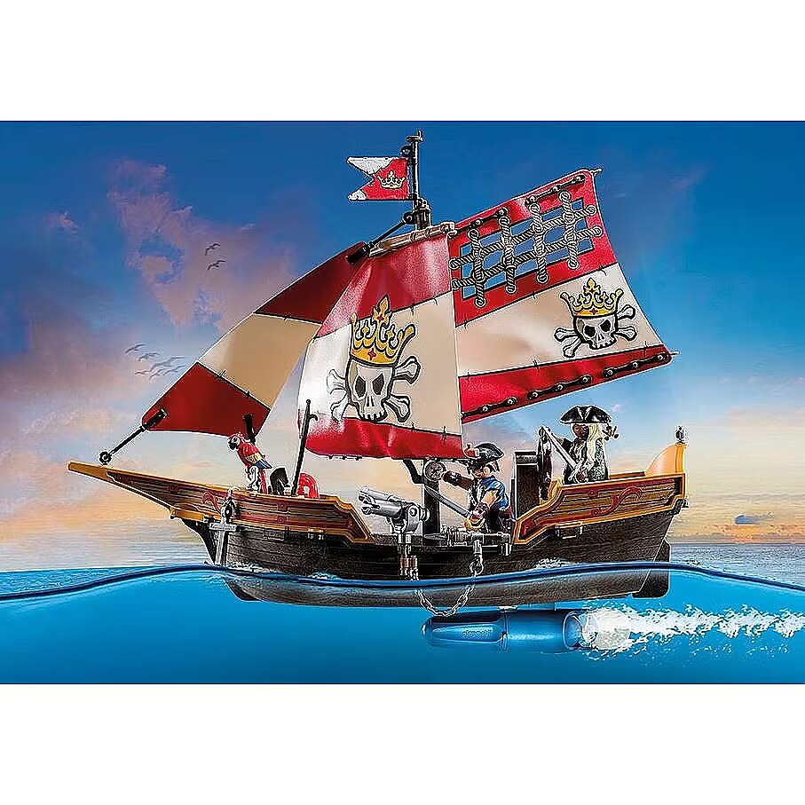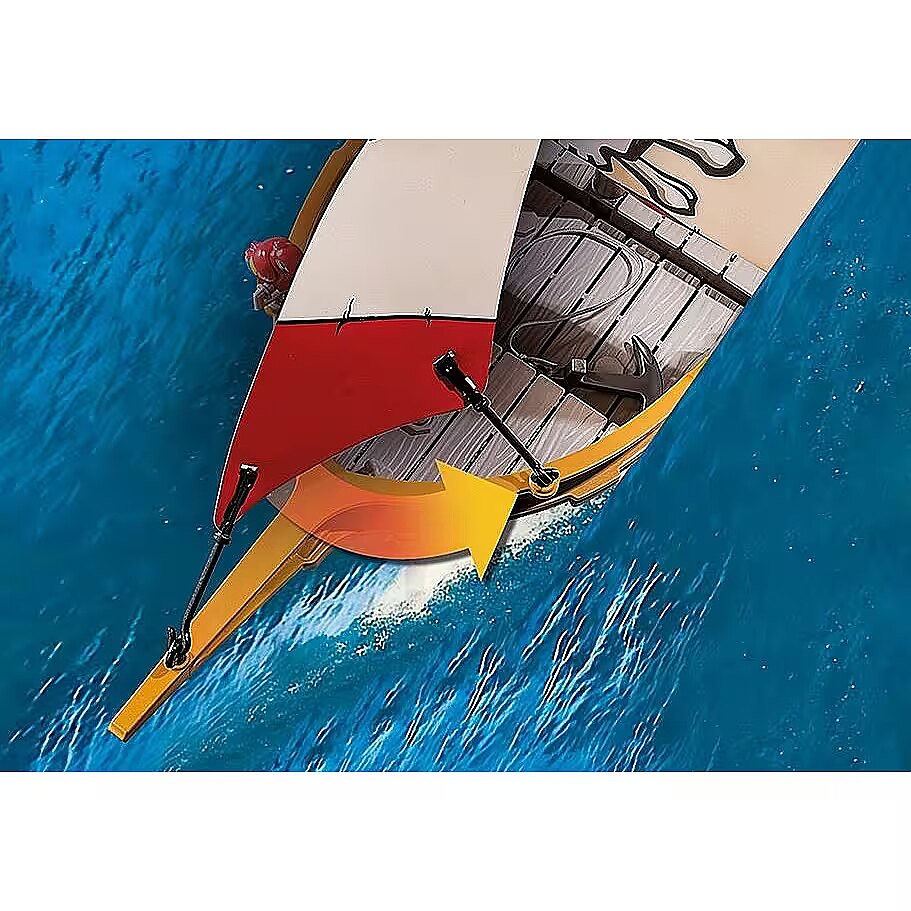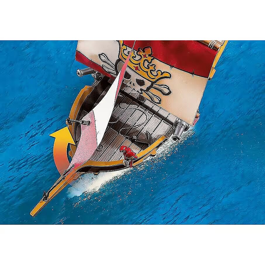 Description - Piracka przygoda wzywa! Ze zwinnego, pływającego statku, należącego do królowej piratów, możliwe jest akowanie wrogich okrętów lub odpieranie niebezpieczeństw pirackiego świata. Dzięki obracającym się i wychylnym armatom napastnicy szybko się poddają. Teraz nic nie stoi na przeszkodzie w poszukiwaniu ukrytych, pirackich skarbów... Podnieś żagle i wypłyń w rejs z królową piratów i jej załogą! niezwykłe pirackie przygody czekają na wszystkich fanów piratów na statku pirackim PLAYMOBIL. Szczegółowo zaprojektowany zestaw zawiera statek piracki z ruchomymi żaglami, obracające się armaty, dwie figurki PLAYMOBIL, papugę, a także kotwicę i wiele innych elementów oraz akcesoriów. Statek unosi się na wodzie i można go uzupełnić o silnik podwodny (7350 - sprzedawany oddzielnie). Zaciski na stopy na pokładzie statku zapewniają stabilność figurkom. Dzięki pomysłowym figurkom, szczegółowemu wyposażeniu i wspaniałym funkcjom, zestawy do zabawy z serii Pirates PLAYMOBIL oferują wiele godzin zabawy dla dzieci w wieku od 4 lat.